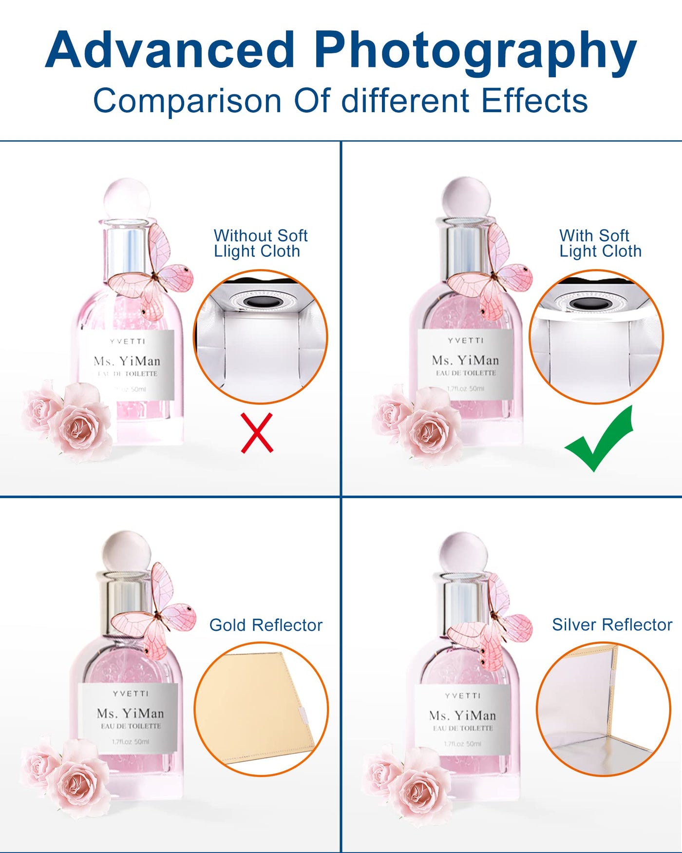 Light Box Led Specification 1. Number Of Lamp Beads: 96 High-Display Lamp Beads 2. Lamp Bead Model: 2835 3. Lamp Bead Brightness: 24-26Lm 4. Positive White Temperature: 5500K 5. Dimming Range: 1%-100% 6. Dimming Gear: 10 Gears Adjustment 7. Cri: Ra More Than 95 8. Power: 1-10W 9. Voltage: 5V 10. Size: 200Mm Outside Diameter 11. Power Supply: Usb Interface Power Supply 12. Cable Length: 2 Meters Note: With 6 Background Paper, Double Side, There Are 12 Colors Backgroun. Product Package List: 1. Photo Studio (A Ring Light Board) X 1 2. Soft Case X 1 3. Black/ White Background Paper X 1 4. Gray/ Gold Background Paper X 1 5. Yellow / Orange Background Paper X 1 6. Red / Pink Background Paper X 1 7. Blue / Purple Background Paper X 1 8. Green / Brown Background Paper X 1 9. Color Packing Box X 1