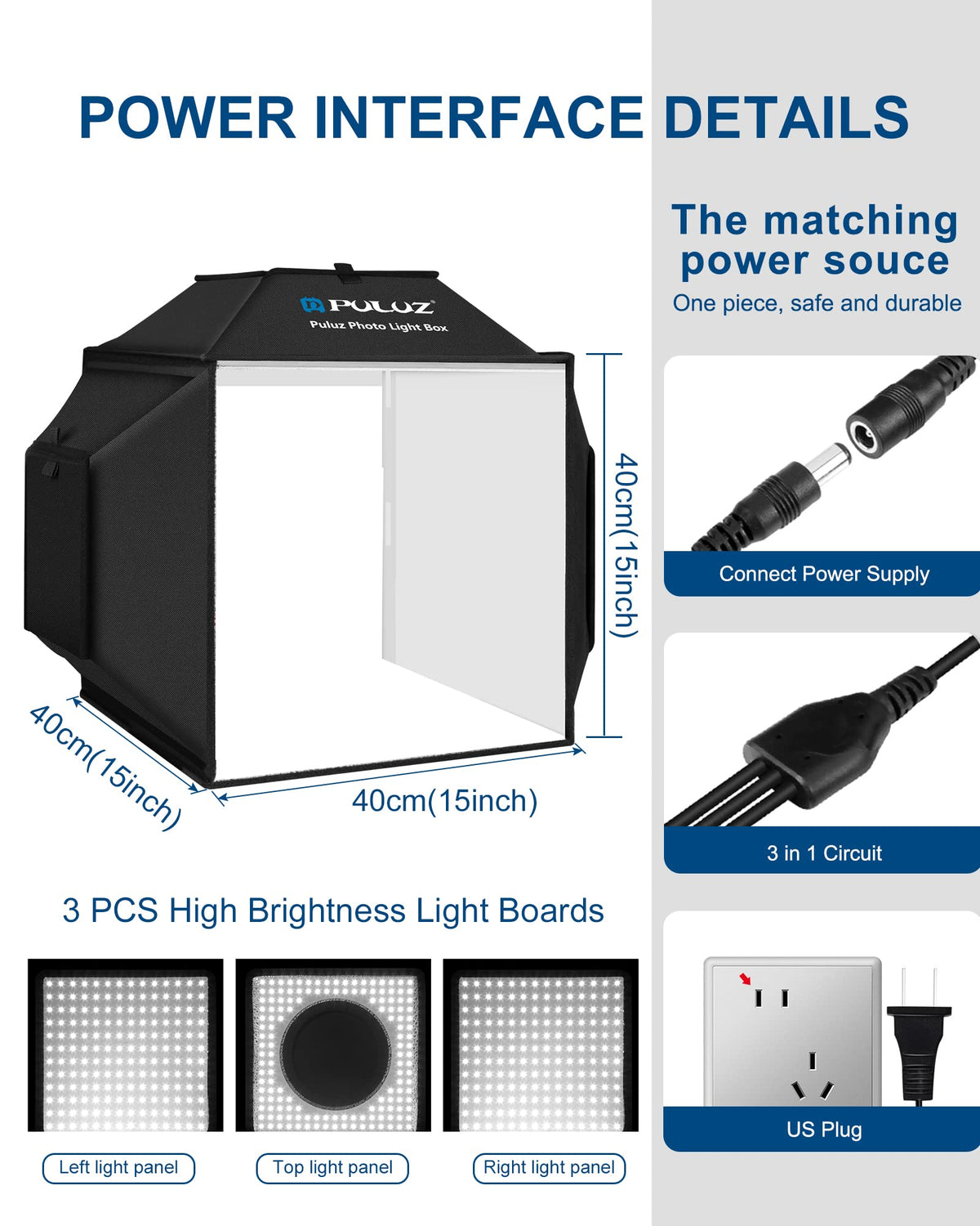 Puluz 16''X16'' Photo Studio Light Box, Upgraded Photo Box Soft Box Integrated Portable Light Box Photography With Hight Cri 480