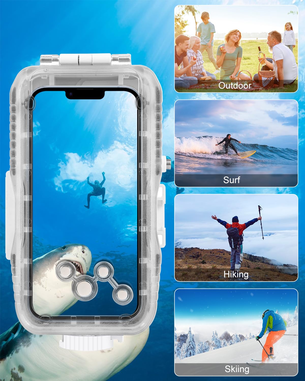 Q: How deep can the PULUZ Waterproof Diving Case go underwater?A: The PULUZ Waterproof Diving Case is designed for underwater use up to a depth of 130 feet (40 meters), making it ideal for activities like diving, snorkeling, and surfing.