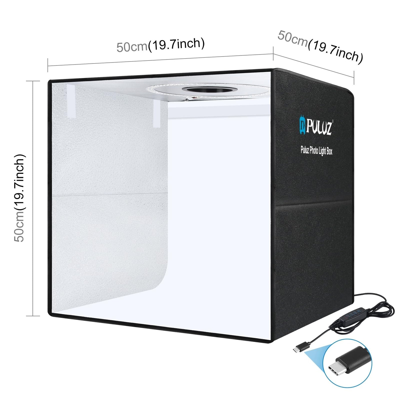Puluz Portable Photo Studio Light Box, 50Cm X 50Cm Photography Light Tent, Professional Dimmable Photography Studio Tent With 12