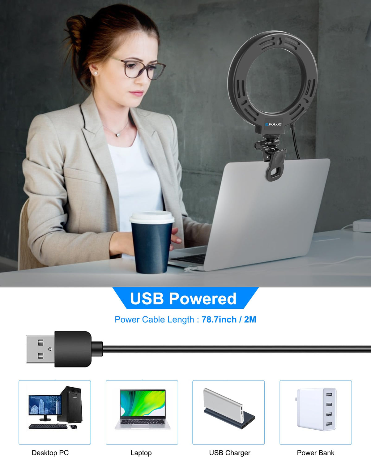 Puluz Video Conference Lighting Kit, Ring Light For Monitor Clip On Lights, Remote Working, Distance Learning,Zoom Call, Self Br