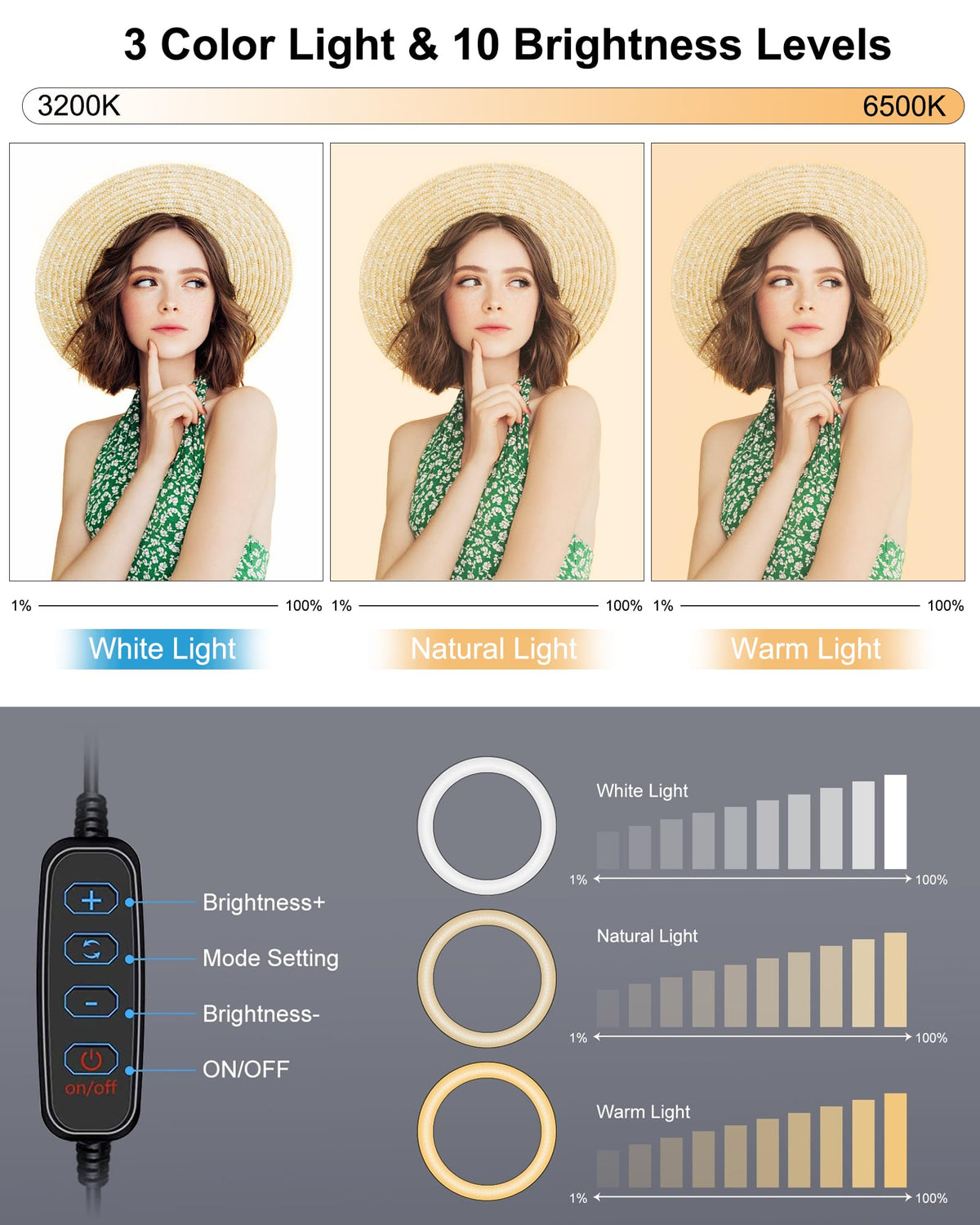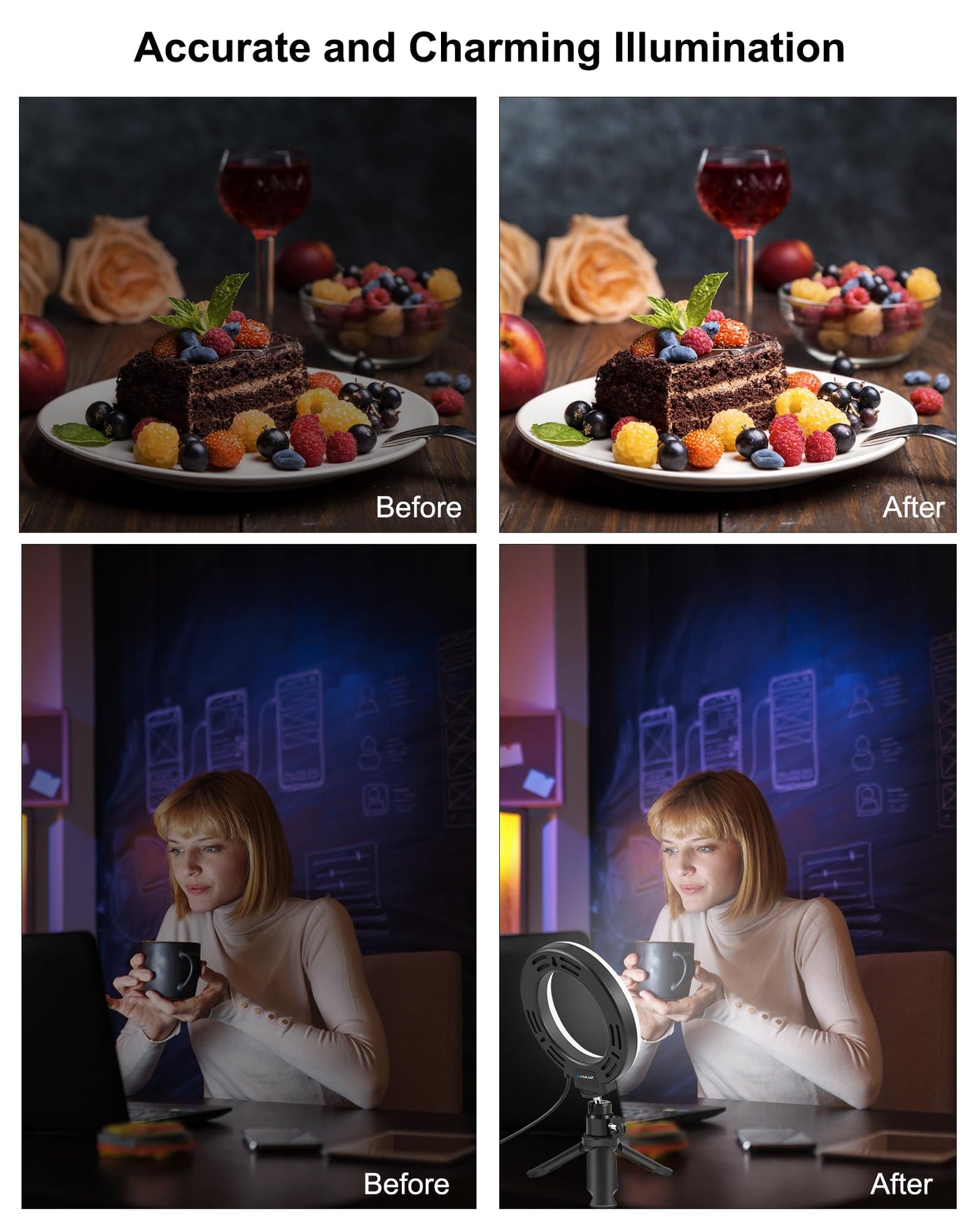Ring Led Light1. Led Ring Light Can Be Mounted On The Holder And Take It Anywhere. 2. The Ring Light Is Made Of 40Pcs Energy-Saving Led Beads, Its Heat Dissipation Is Excellent, Constant Current Drive And High Color Rendering, Soften The Light Source And Enhance Skin Tone In Portraits Photography. 3. The Usb Ports Can Be Used With Multiple Devices, Such As Connect Computer Host, Laptop, Mobile Power And Usb Charger. You Will Be Able To Enjoy Led Ring Light At Any Time Free. 4. Lightweight And Portable Design: Convenient To Use And Carry When You Traveling Or Working Outdoor Etc. 5. Extensive Application: It Is Widely Applied To Outdoor Photo Light, Filling Light Indoors, Portrait, Fashion, Advertisement Photography, Shooting Video Etc. 6. Compact Ring Light With Mounting Clamp: 4.7-Inch Compact Design With An Anti-Scratch Mounting Clamp (Mouth Opening Size Up To 2.4 Cm) Allows This Ring Light To Be Mounted On Your Desk, Laptop, Chair, Bed, Conference Table, Even Your Pc Monitor, Laptop And Anywhere You Desire With Strong Stability.Ring Led Specification1. Number Of Beads: 2X20Pcs 2. Lamp Bead Model: 2835 3. Lamp Brightness: 24-26Lm 4. White Light Color Temperature: 6500K 5. Warm White Color Temperature: 3200K 6. Power: 0.3-6.5W 7. Voltage: 5V 8. Indicates: Ra>90 9. Dimming Range: 1%-100% 10. Shell Material: Abs, Pvc Light Cover 11. Dimensions: Outer Diameter 120Mm. Inner Diameter 80Mm 12. Power Supply: Usb Port Power Supply 13. Cable Length: 2Mpackage List1. Ring Led Light X 1 2. Clip X 1 3. Usb Cable Wire Control X 1 4. Tripod Holder X 1