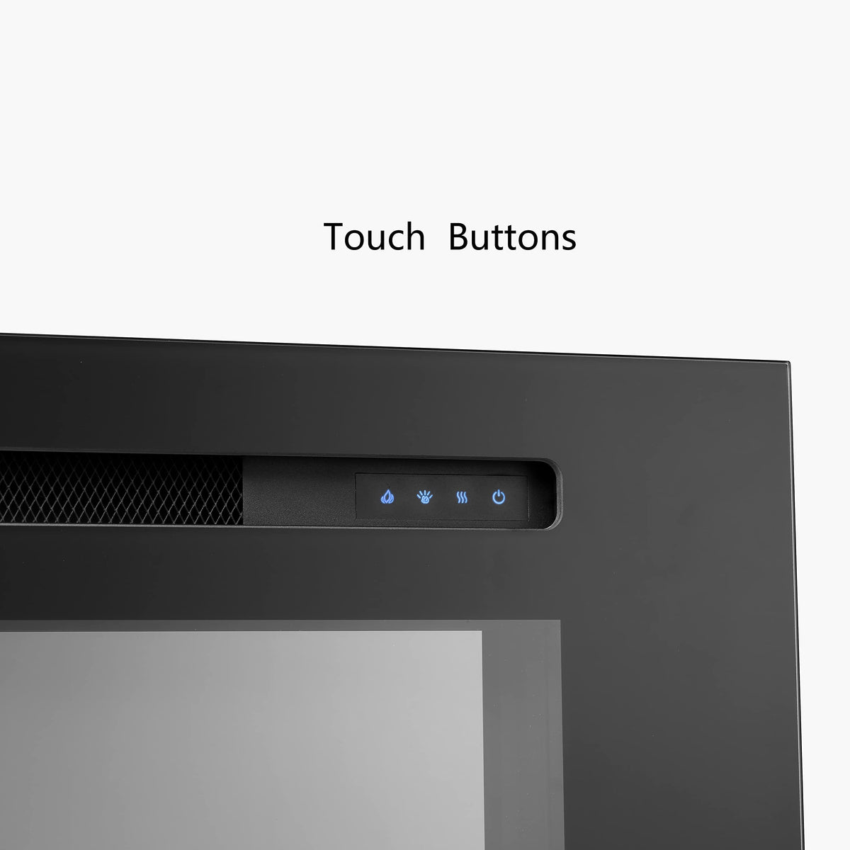 Puraflame Alice 36 Inches Recessed Electric Fireplace, Flush Mounted For 2 X 6 Stud, Log Set & Crystal, 1500W Heater, Black