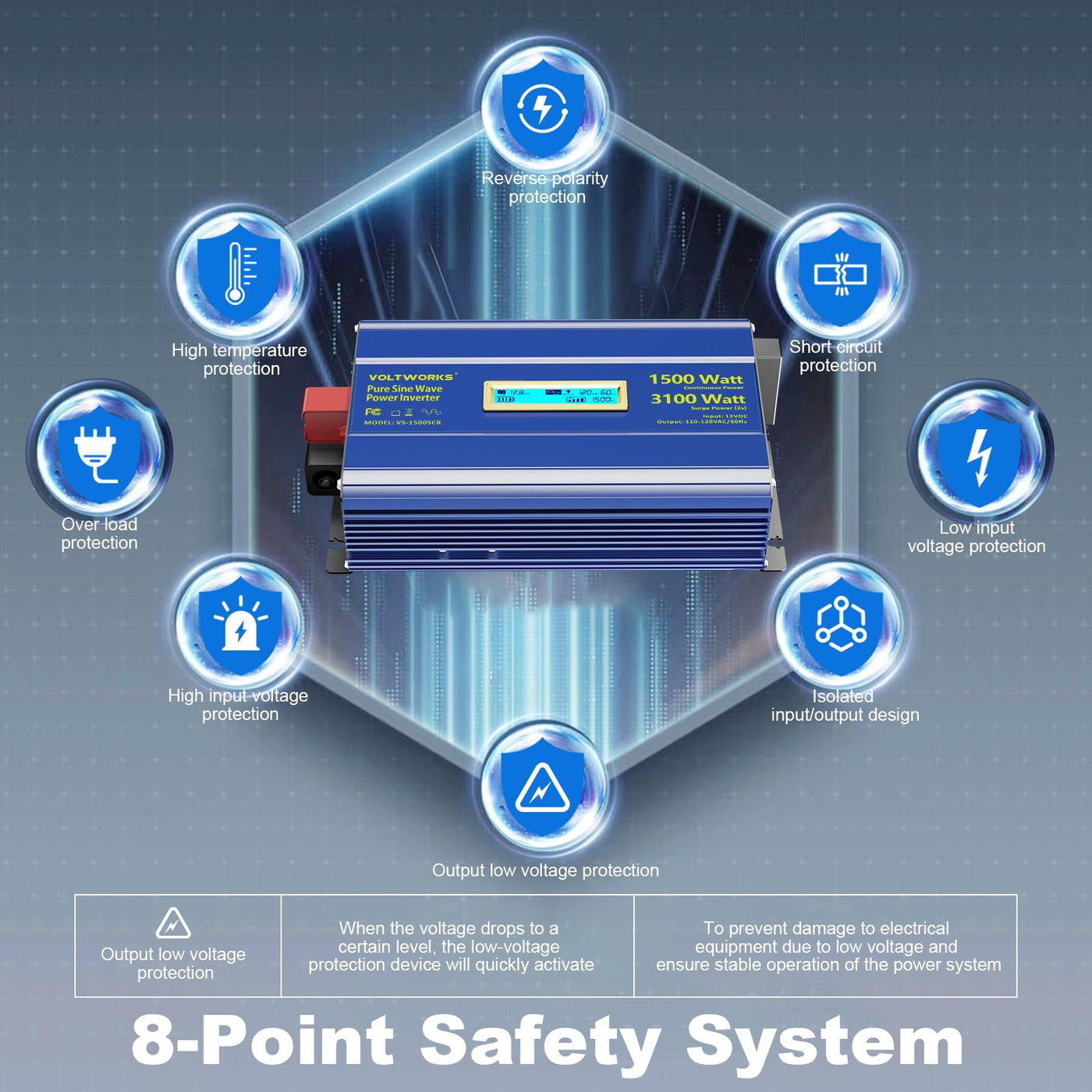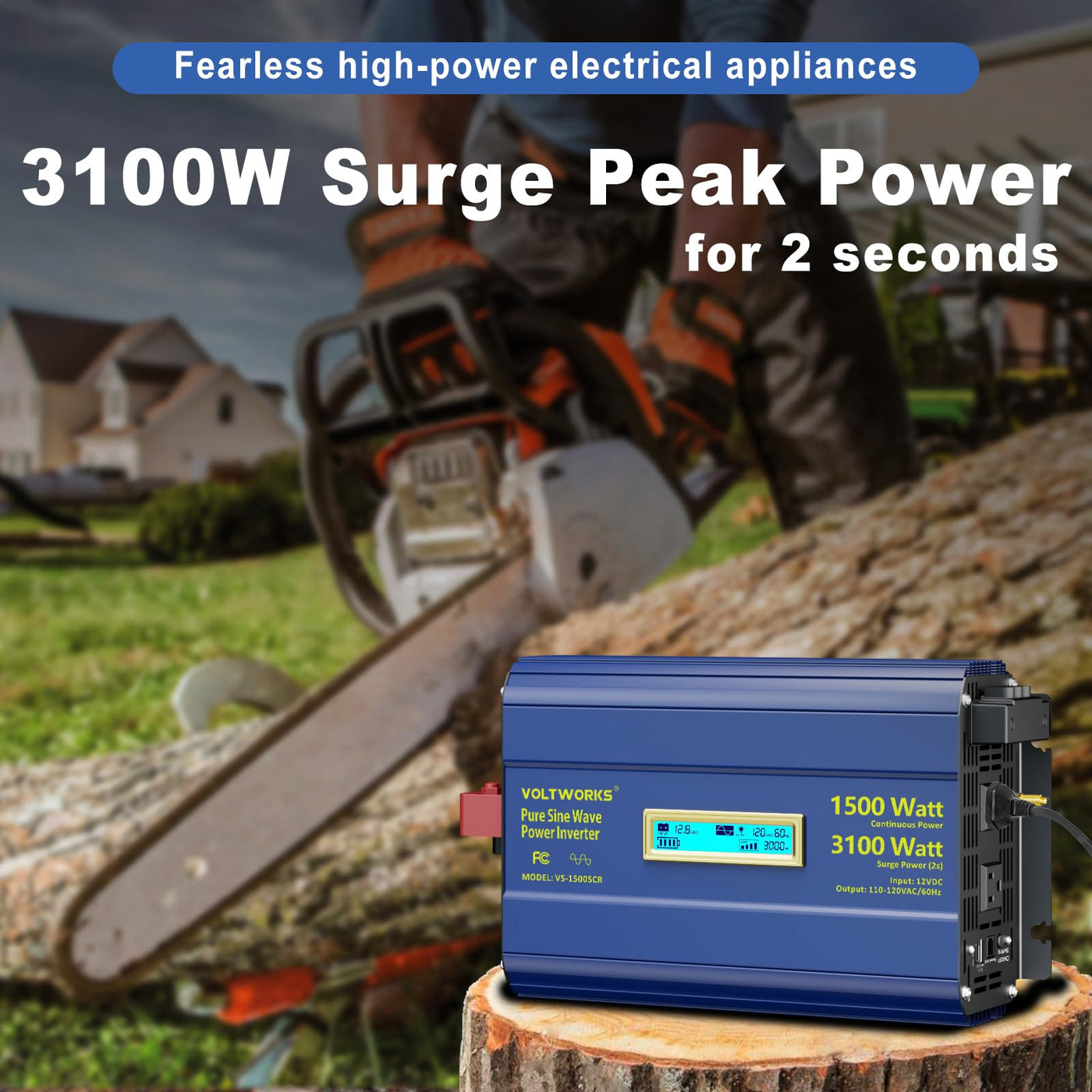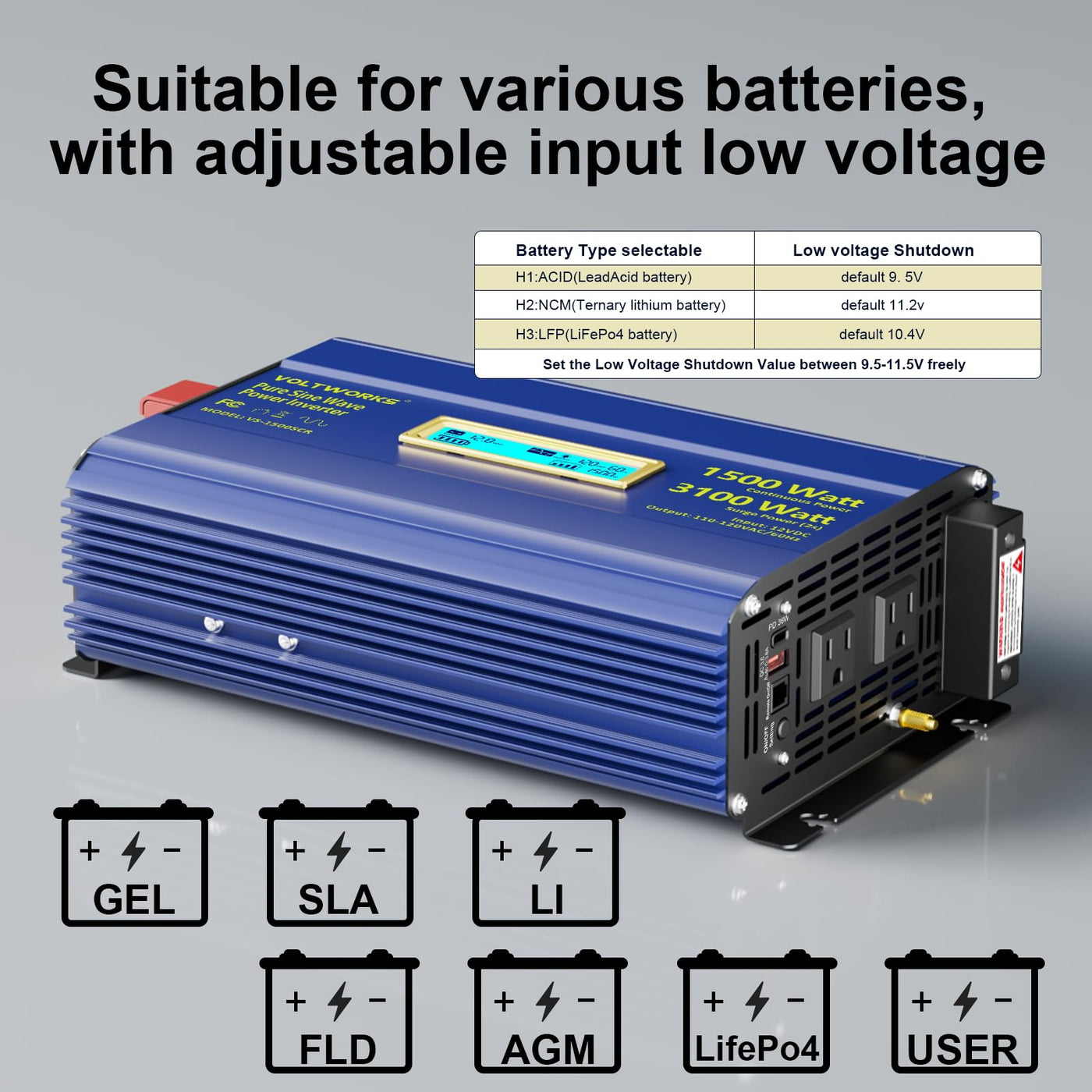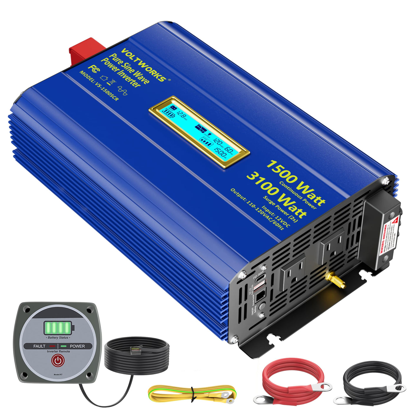 Pure Sine Wave Inverter 1500 Watt 12V Dc To 110V 120V Ac Surge 3100W Power Inverter Built-In Ul Fuses Compatible With Lithium Battery Starlink For Off-Grid Solar Rv Truck With 3.6A Usb Ports Voltowrks