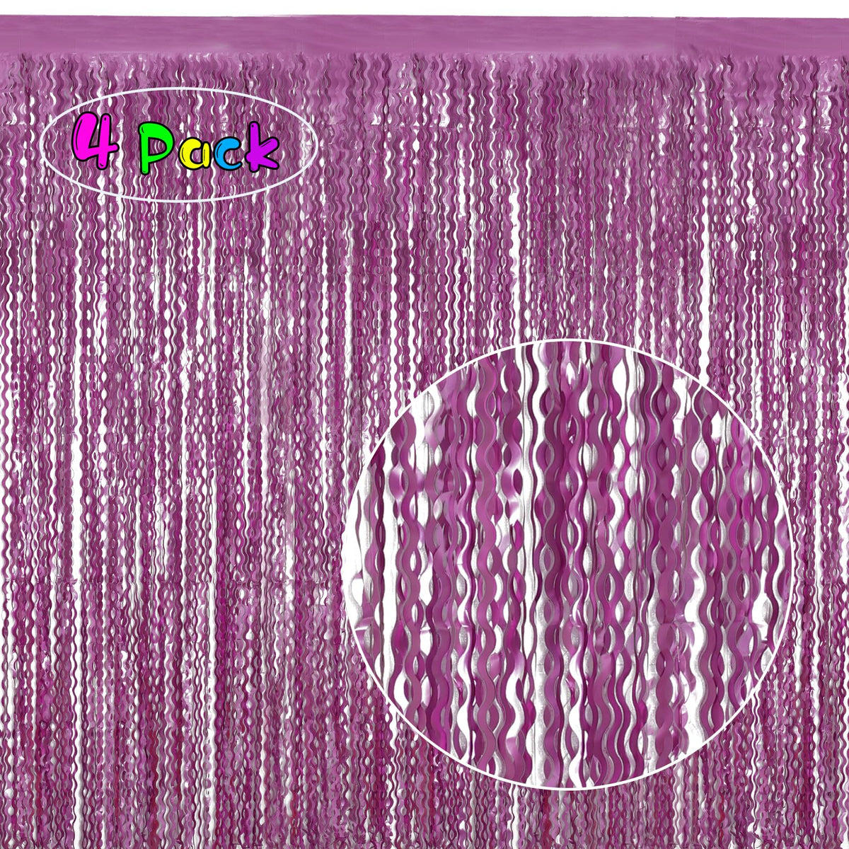 Q: What occasions are these curtains suitable for?A: These tinsel foil fringe backdrops are perfect for a variety of events, including parties, weddings, graduations, Halloween, and theme celebrations like Mardi Gras or Valentine's Day.