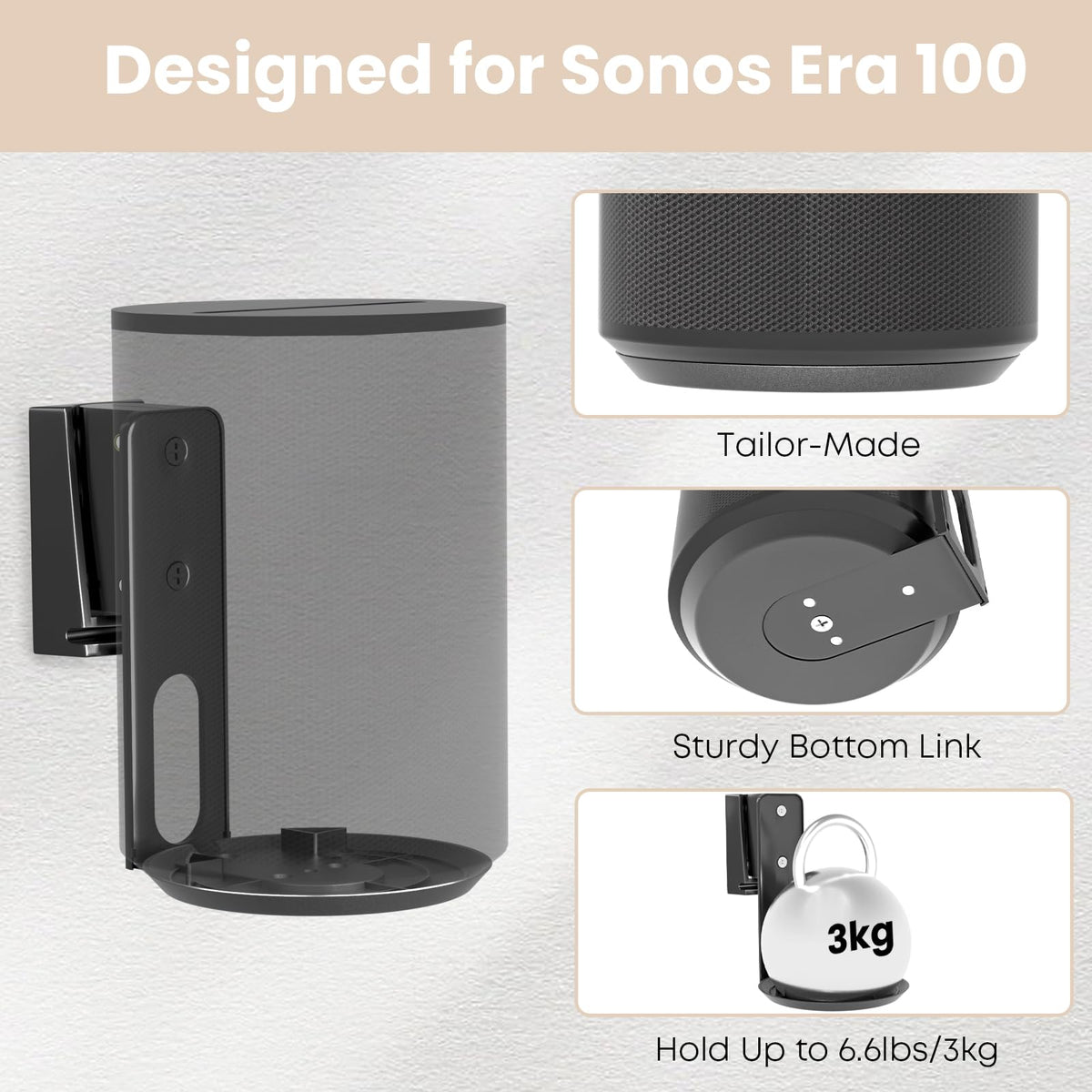 Speaker Wall Mount For Sonos Era 100,Tilt & Swivel Speaker Shelf Bracket For Better Audio Enjoyment,Cable Management,Hold Up To 6.6Lbs (1 Pack Black)