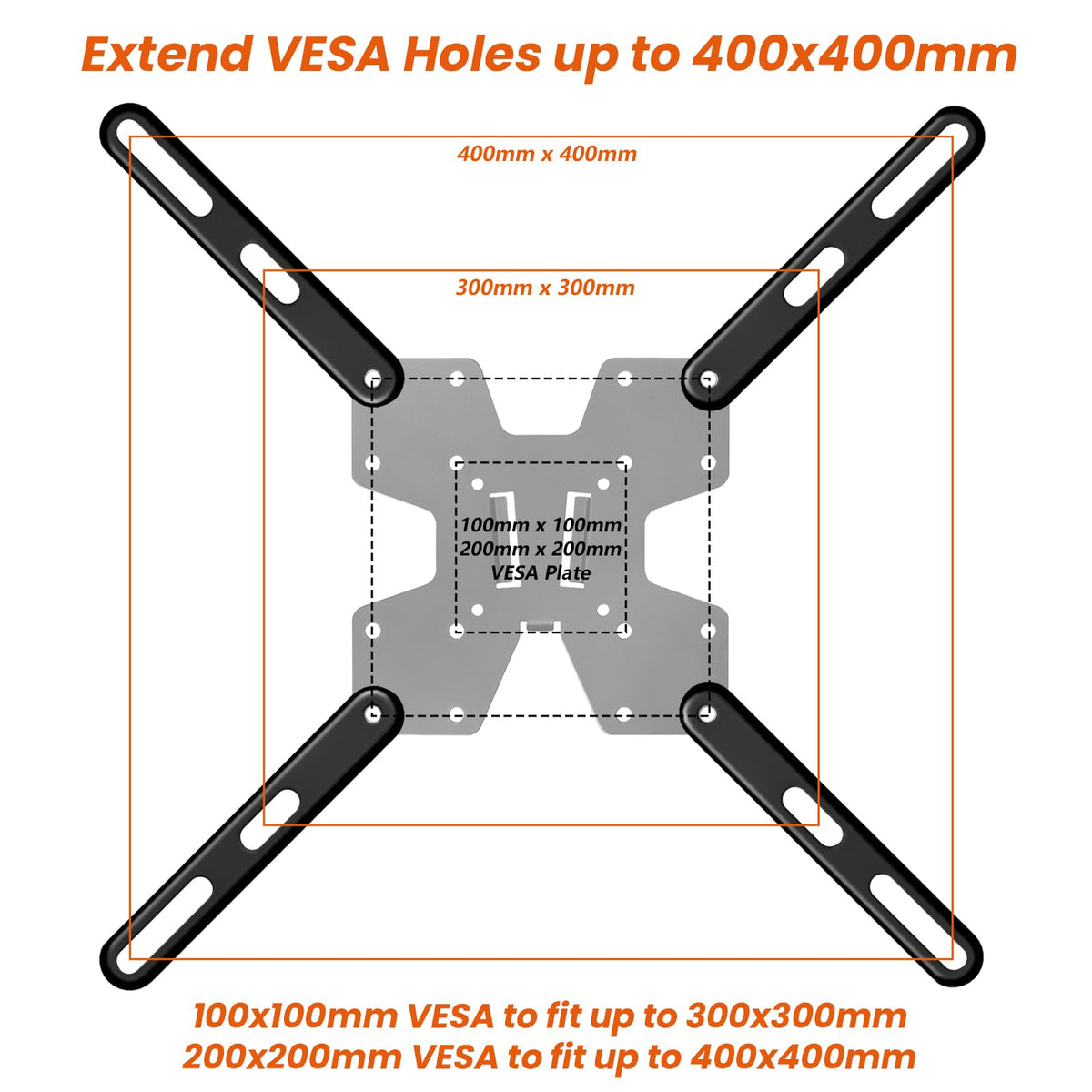 PUTORSEN VESA Adapter Mount Bracket Kit for Screens 32 to 55 inch LCD LED TV, TV Mount Adapter Bracket Upgrade Mounting Holes up to 400x400 mm, Black