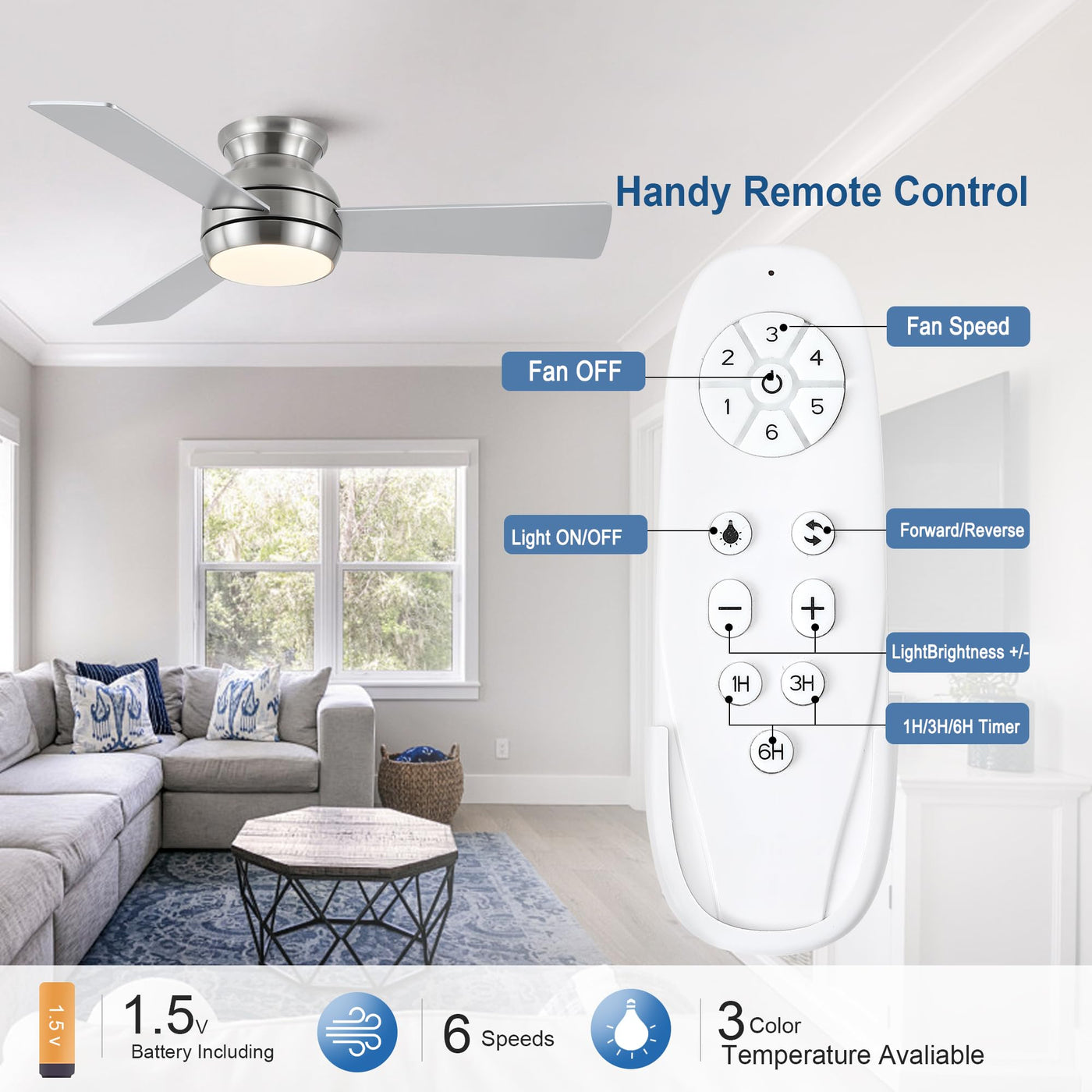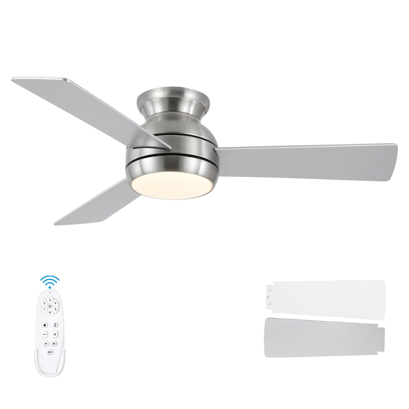 Putroad 42 Inch Ceiling Fans With Lights And Remote, Brushed Nickel Low Profile Ceiling Fan With Light, Flush Mount, Reversible,