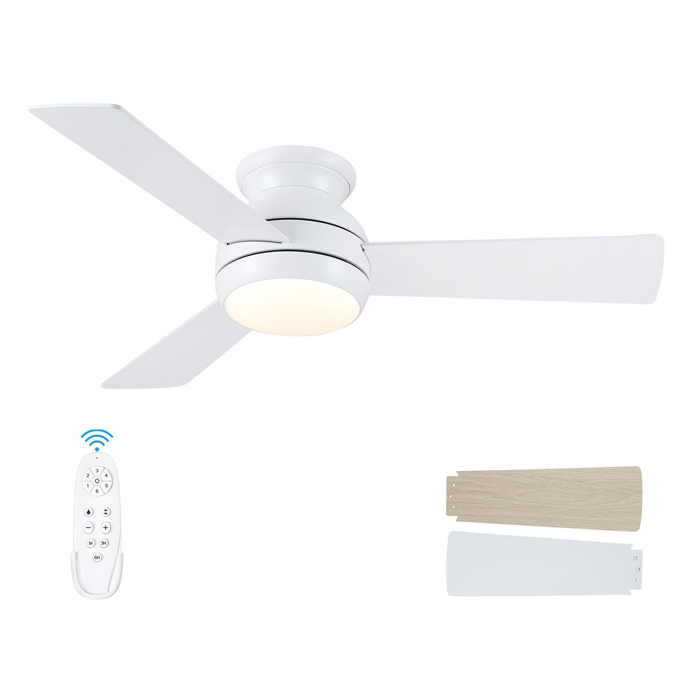 42 Inch Ceiling Fans With Lights, White Low Profile Ceiling Fan With Light And Remote Control, Flush Mount, Reversible, 6 Speeds, 3Cct, Dimmable, Modern Ceiling Fan For Bedroom, Indoor/Outdoor
