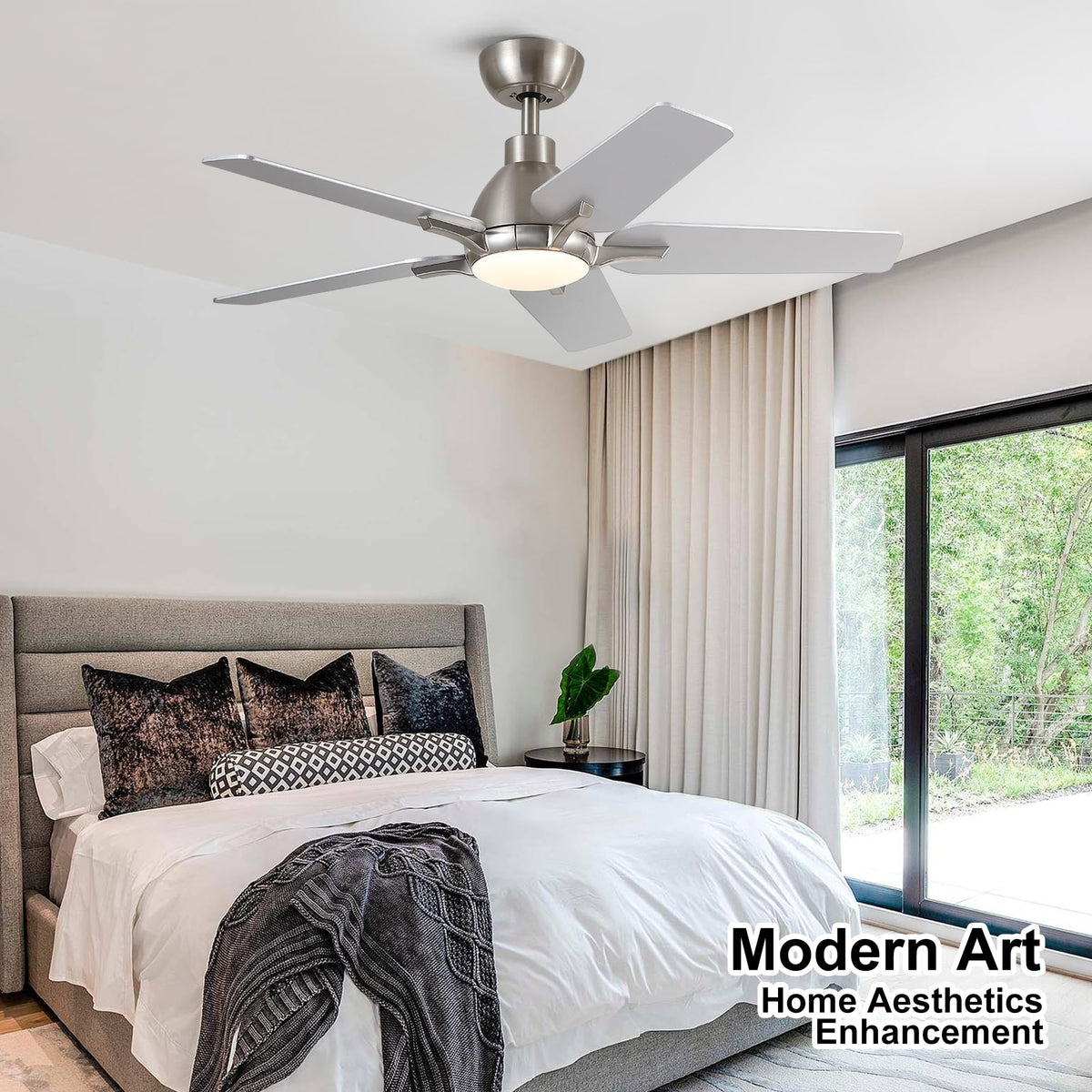 Putroad 42 Inch Ceiling Fans With Lights, Brushed Nickel Ceiling Fan With Remote, Modern Ceiling Fan For Bedroom, Living Room, D