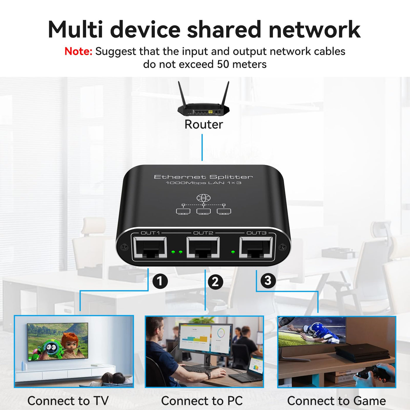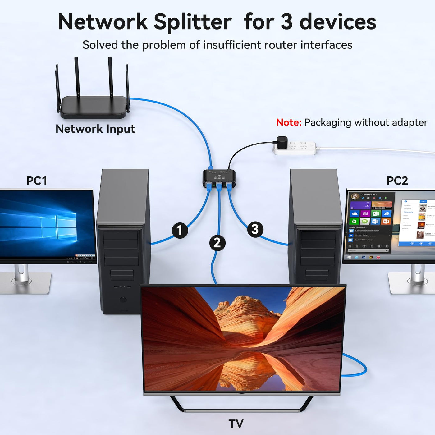 Pvbctcsid Ethernet Splitter 1 To 3 1000Mbps High Speed Internet Splitter Lan Splitter Ethernet Switch Either Network Splitter Su