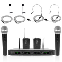 Pyle 4 Channel Wireless Microphone System Portable Uhf Audio Mic Set With 2 Handheld, 2 Headset, 2 Lavalier Mics, 2 Transmitte