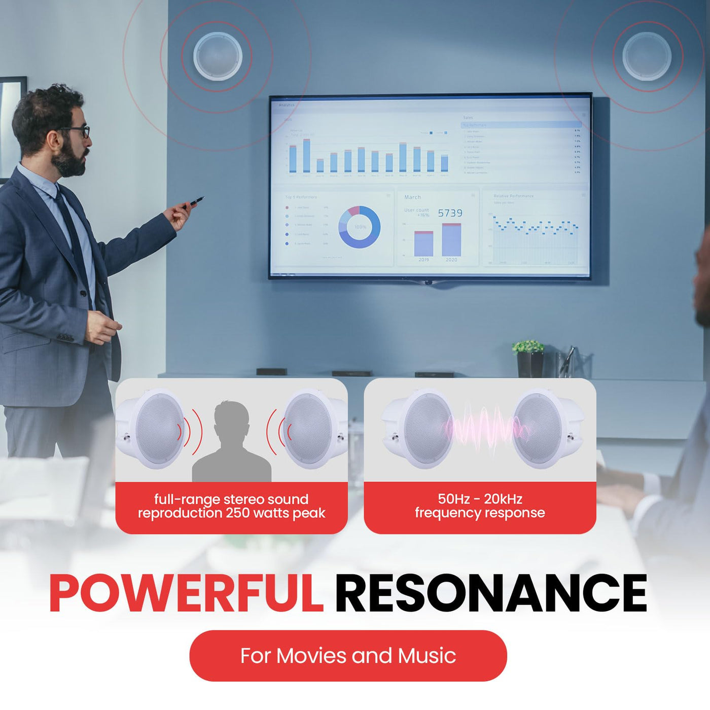 4-8 Ohm Impedance: The Home Sound System In-Ceiling Speakers Have Dual 1'' -Inch High-Temperature Voice Coil & 4-8 Ohm Impedance. Can Be Used W/ Regular Home Audio Receiver & Amp. Made To Produce Both Powerful, Rich Sound & Quiet Background Music Full Range Audio: Regardless The Size, These Wall/Ceiling Mounted Speakers Have 50Hz - 20Khz Frequency Response & Features 8'' High Power Mid-Bass Speaker For Full-Range Stereo Sound Reproduction & Will Suffice As A Home Surround System 250 Watt Power: Pyle Home In-Wall / In-Ceiling Mount Surround Sound Speakers Has A Power Handling Of 250 Watts Peak That Will Produce High Sound Resonance. It Has A 4-8 Ohm Impedance And Great For Watching Movies, Listening To Music And More Flush Mount Design - This Ceiling/Wall Mount Speaker Has A Compact Flush Mount Design For Simple Easy Installation In-Wall / In-Ceiling Or Pre-Cut Speaker Openings. For The Home, Office, Professional, Or Custom Audio Applications On Any Flat Surface Paintable Grill: The In-Wall Speakers / In-Ceiling Speaker System Features A Stain-Resistant Paintable Grill Cover To Match Existing Flush Mounted Designs At Home Or Workplace For A Clean Look & Achieve Wide-Range Sound Performance Without Compromise 2-Way In-Ceiling Speaker 8-Inch Midbass Speaker 1-Inch High Temperature Voice Coil Directable 1-Inch Polymer Dome Tweeter 250 Watts Rated Peak Power