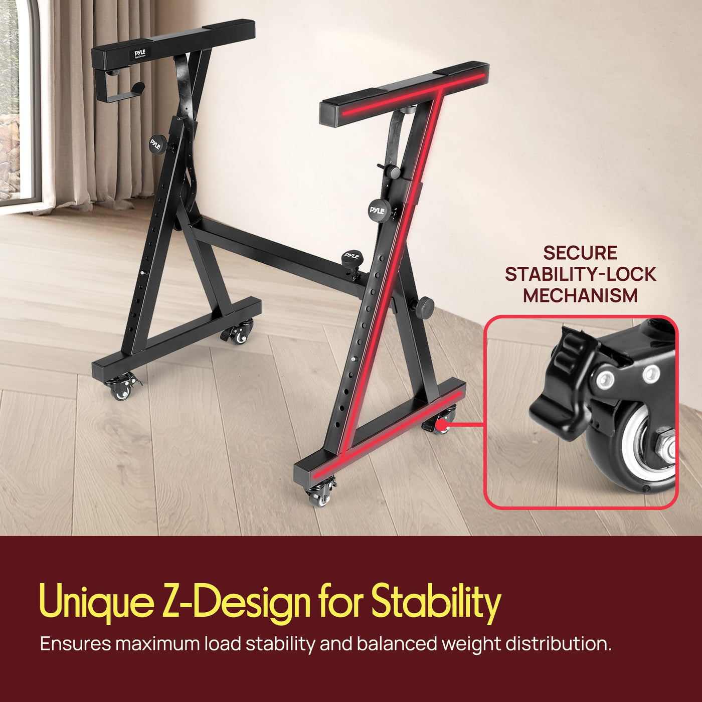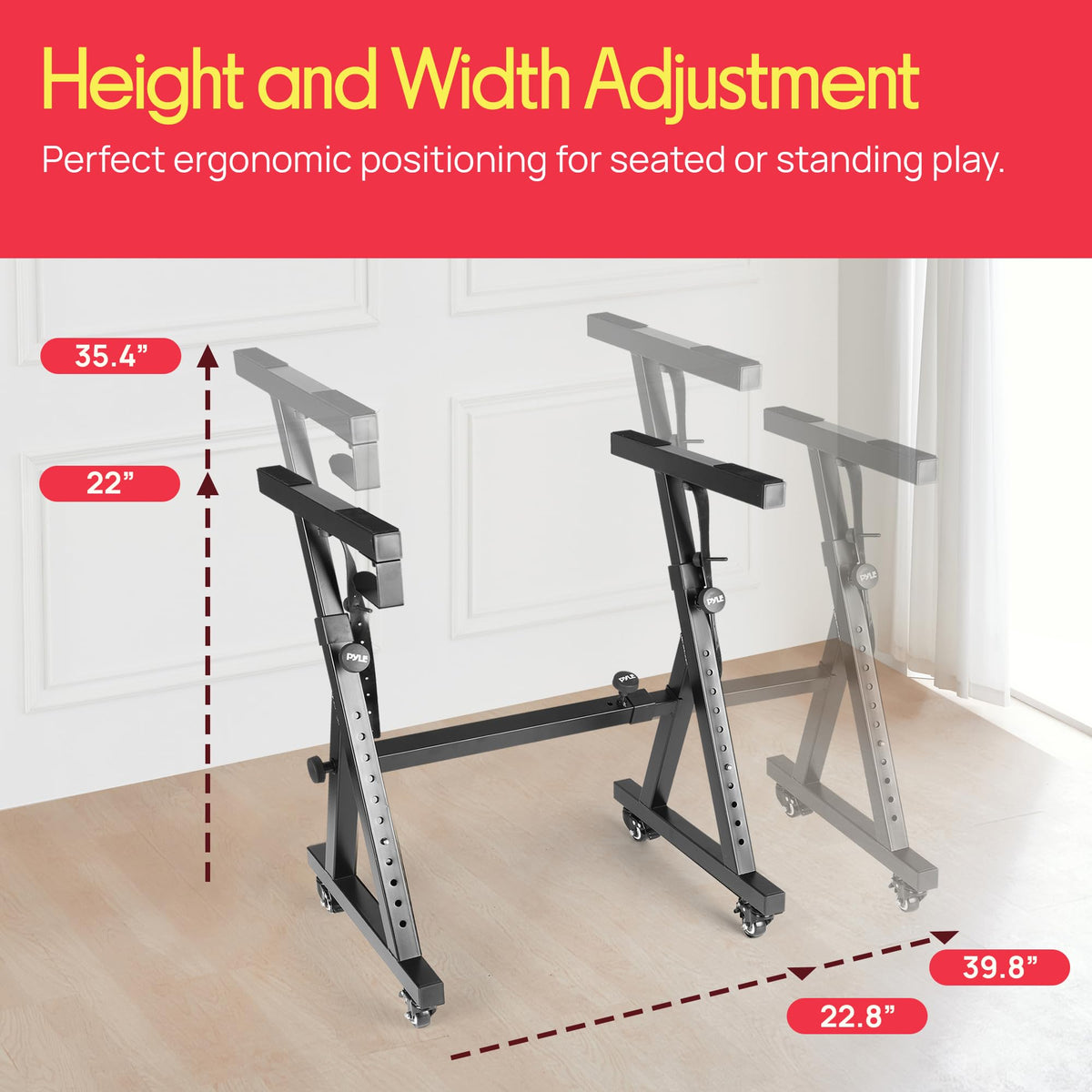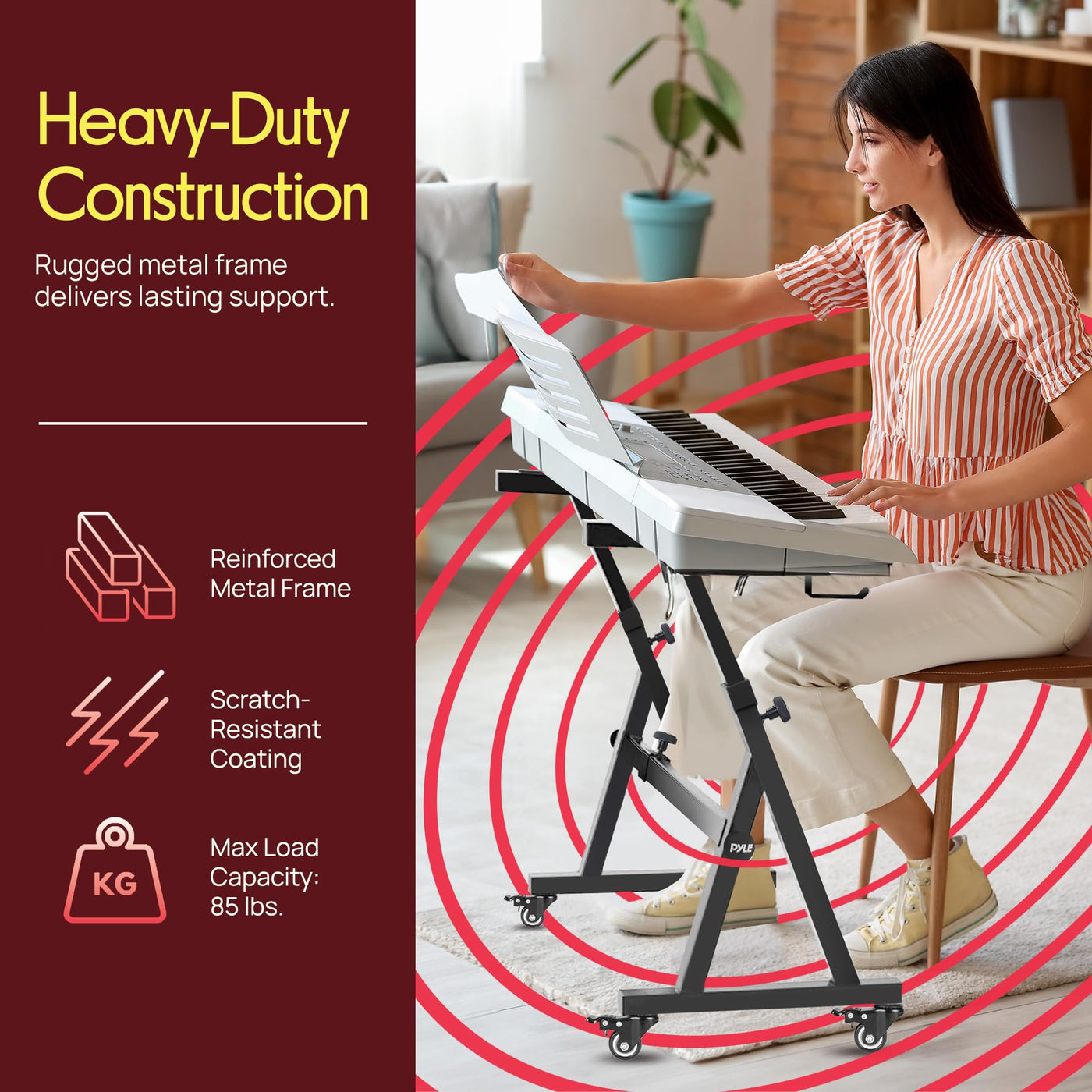 Pyle Universal Electronic Piano, Black Heavy-Duty Z Style Keyboard Stand With Locking Wheels, Adjustable Height And Width, Porta