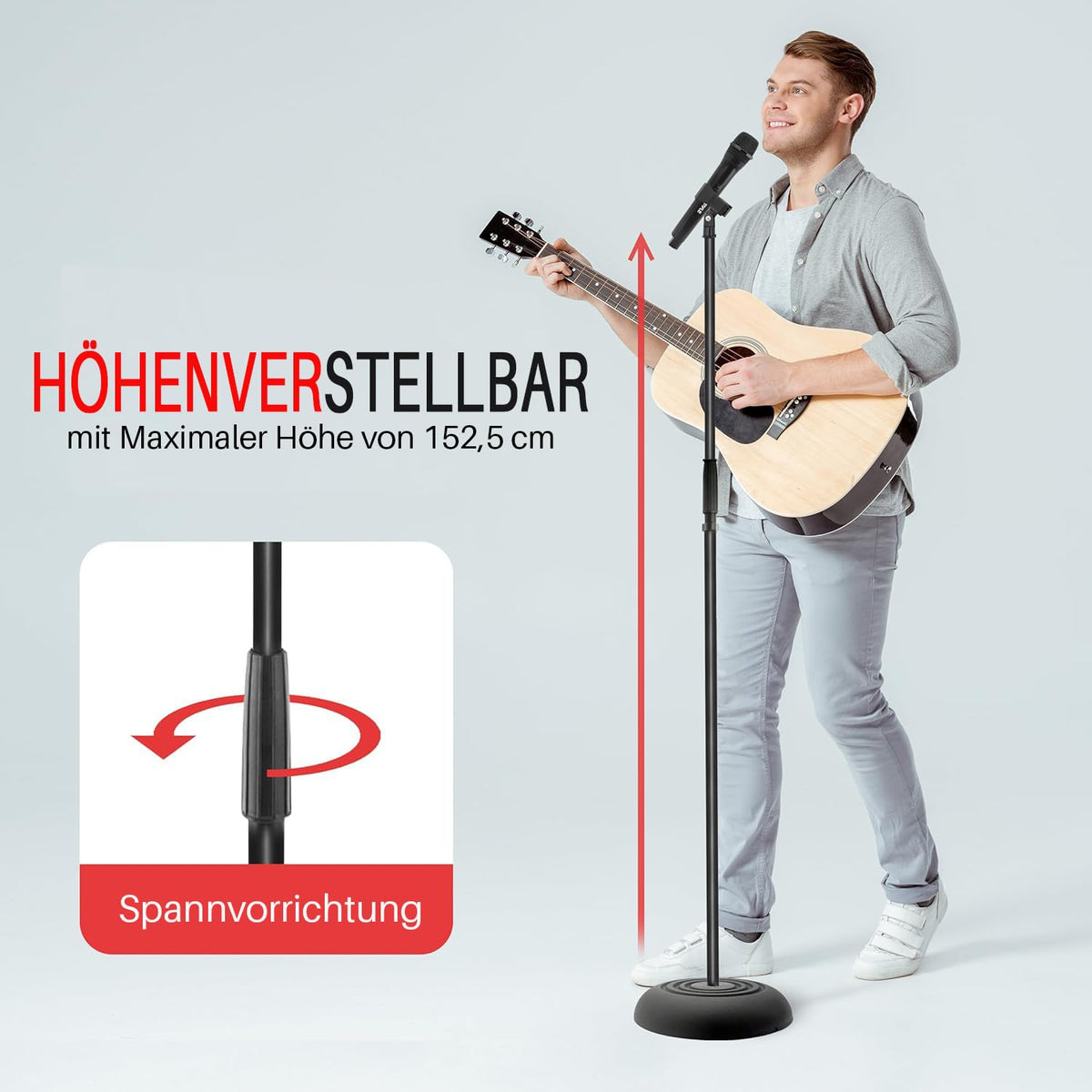 Pyle Universal Microphone Stand - Handheld Mic Compatible, Heavy Compact Base, Lightweight & Compact Design, 2.8 To 5 Ft Height