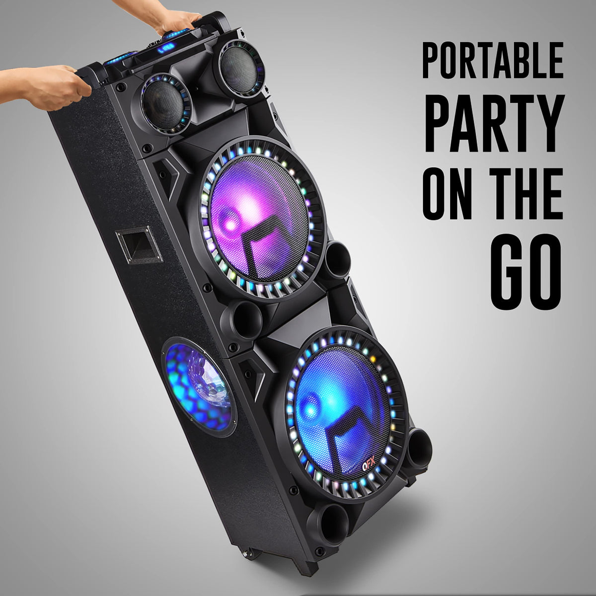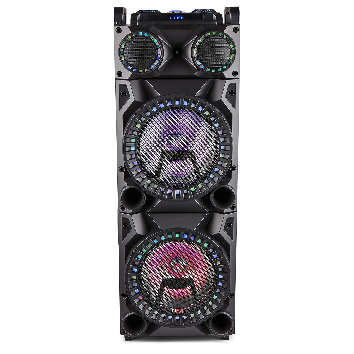 Qfx Pbx 1212 Bluetooth Rechargeable Dual 12� Woofer With 1� Tweeter Speaker System With Microphone Input, Guitar Input, Aux Input, Usb Port, Sd Card Port, Tws, Recording, Fm Radio, Led Party Lights