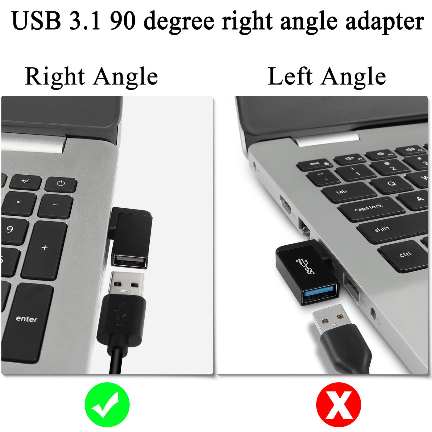 Qianrenon 90�Angle Usb 3.1 Adapter 10Gbps Usb 3.1 Male To Female Right Angle Connector Usb A 3.1 L Angle Converter Coupler, Support Data Transfer Otg 3A Charging, 2Pcs(Right Angle Side Bend)