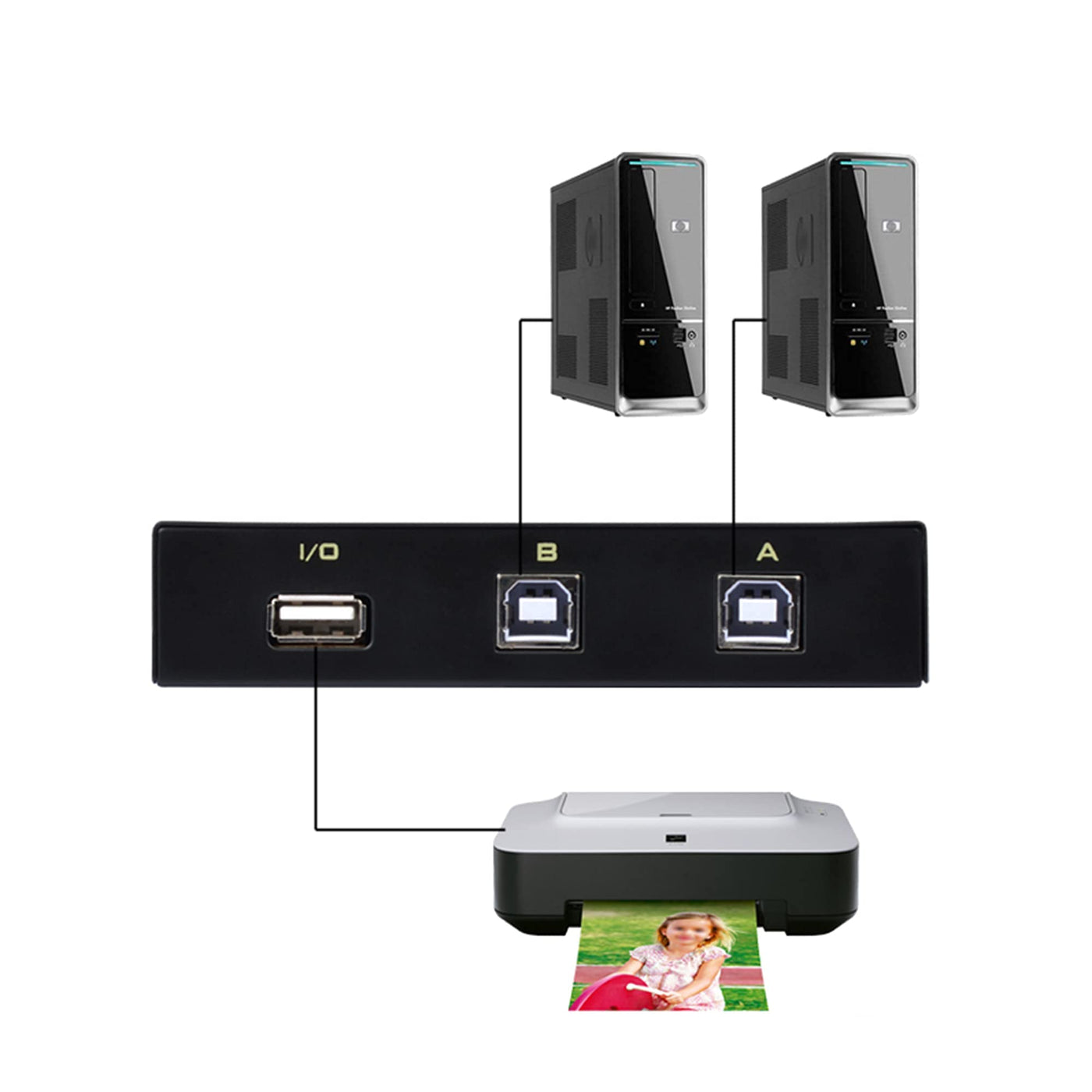 Qianrenon Printer Sharing Switch, 2 Port Usb 2.0 Switch Adapter For Usb Device Port Sharing Between 2 Computers (2 Switch),With