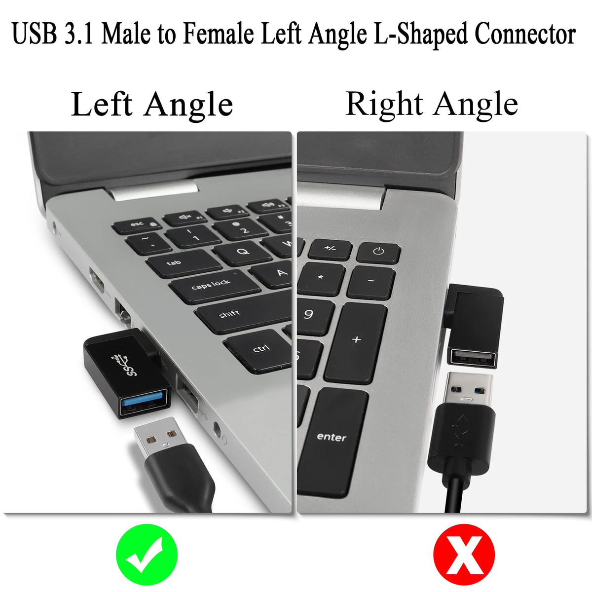 Qianrenon Usb 3.1 90�Angle Adapter 10Gbps Usb 3.1 Male To Female Left Angle L Shaped Connector Usb A 3.1 Data Transfer Converter Coupler, 2Pcs(Left Angle Side Bend)