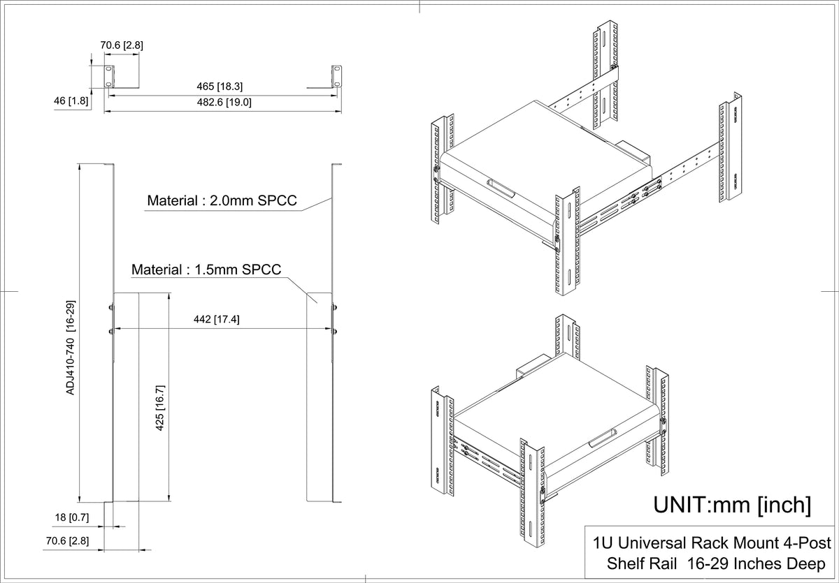 Qiaoyoubang 1U Universal Rack Mount Rails 4 Post Server Rack Shelf Rail 16 29 Inches Adjustable Depth For Apc Hp Ibm Dell Compa