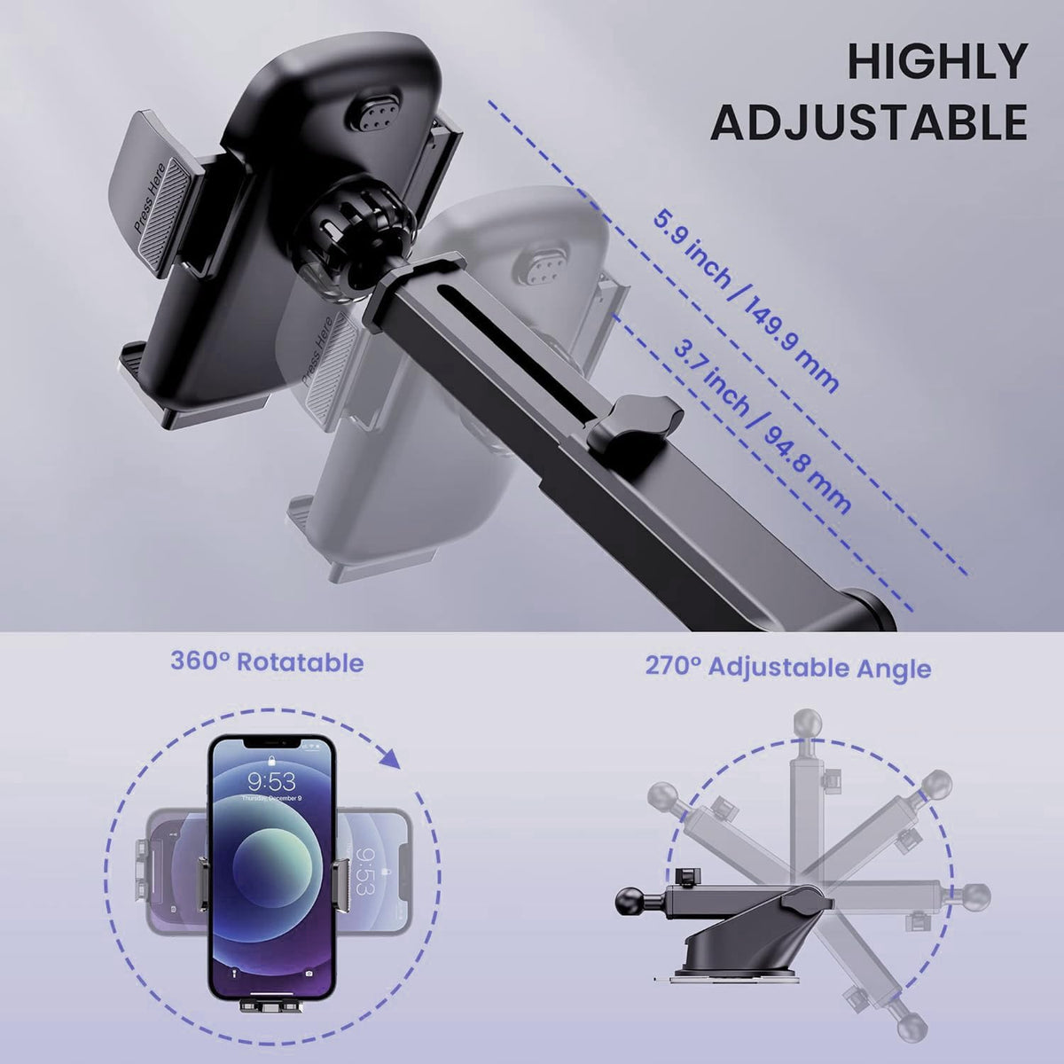 Versatile 3-In-1 Car Phone Gps Navigator Holder: This Upgraded Phone Mount For Car Offers Triple Mounting Options (Windshield, Dashboard, Or Air Vent) With A Reinforced Suction Cup, Slim Vent Clip, And Stabilizing Support Ring. Perfect For Sedans, Trucks, Suvs, And Rideshare Drivers (Uber/Lyft). | 360