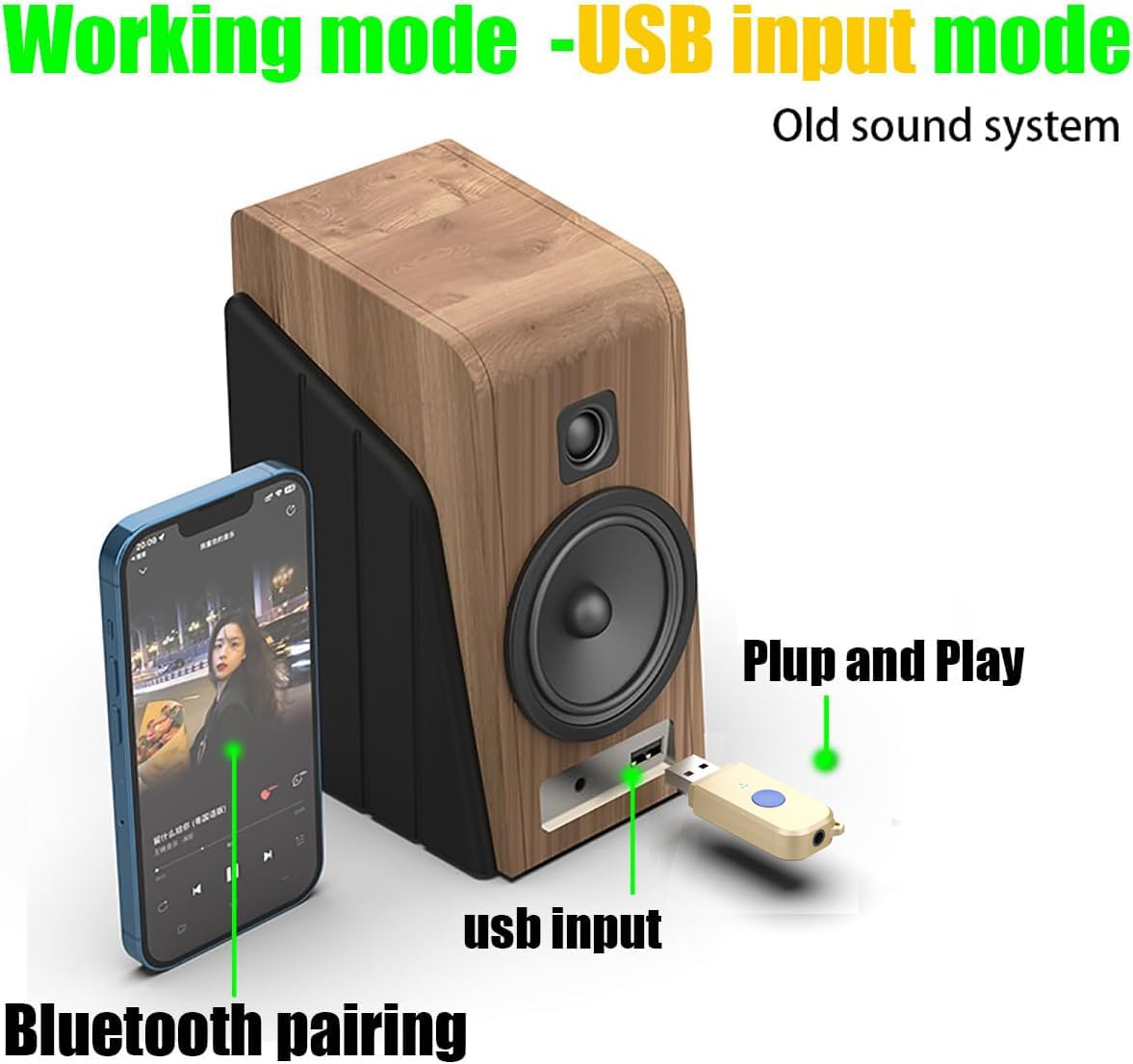 Instructions For Use: 1. (Aux Input Mode) Plug The Product'S Usb Port Into The 5V Power Port, The Product�S Light Will Flash, Plug The 3.5Mm Audio Into The Product�S Audio Port, And Connect The Speaker�S Audio Port Externally. The Speaker Must Be In Audio Input Mode, Turn On The Phone�S Bluetooth, Click Bluetooth Search, Find 'H222' In The Searched Bluetooth Devices And Click Connect. If You Don'T Find It, You Can Refresh And Scan The Bluetooth. After Pairing The Phone, The Speaker Will Prompt,And The Phone Can Play Music And Transfer It To The Speaker For Playback.