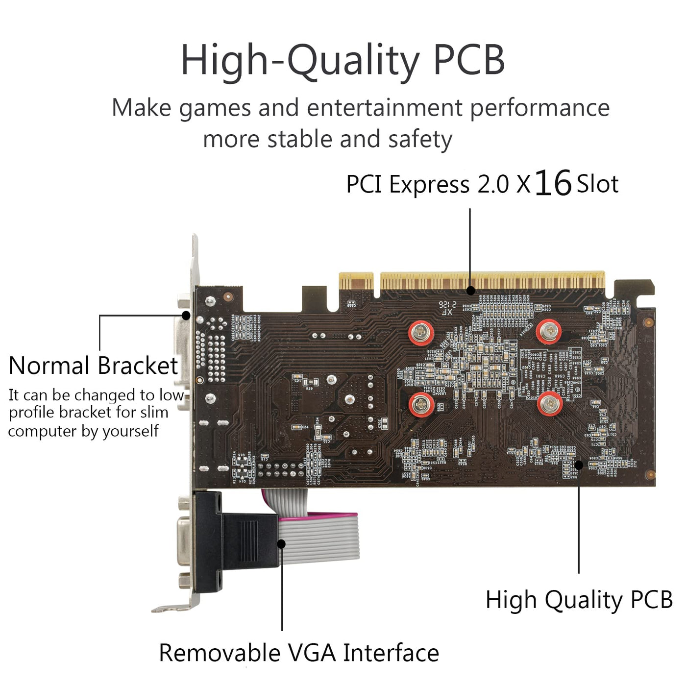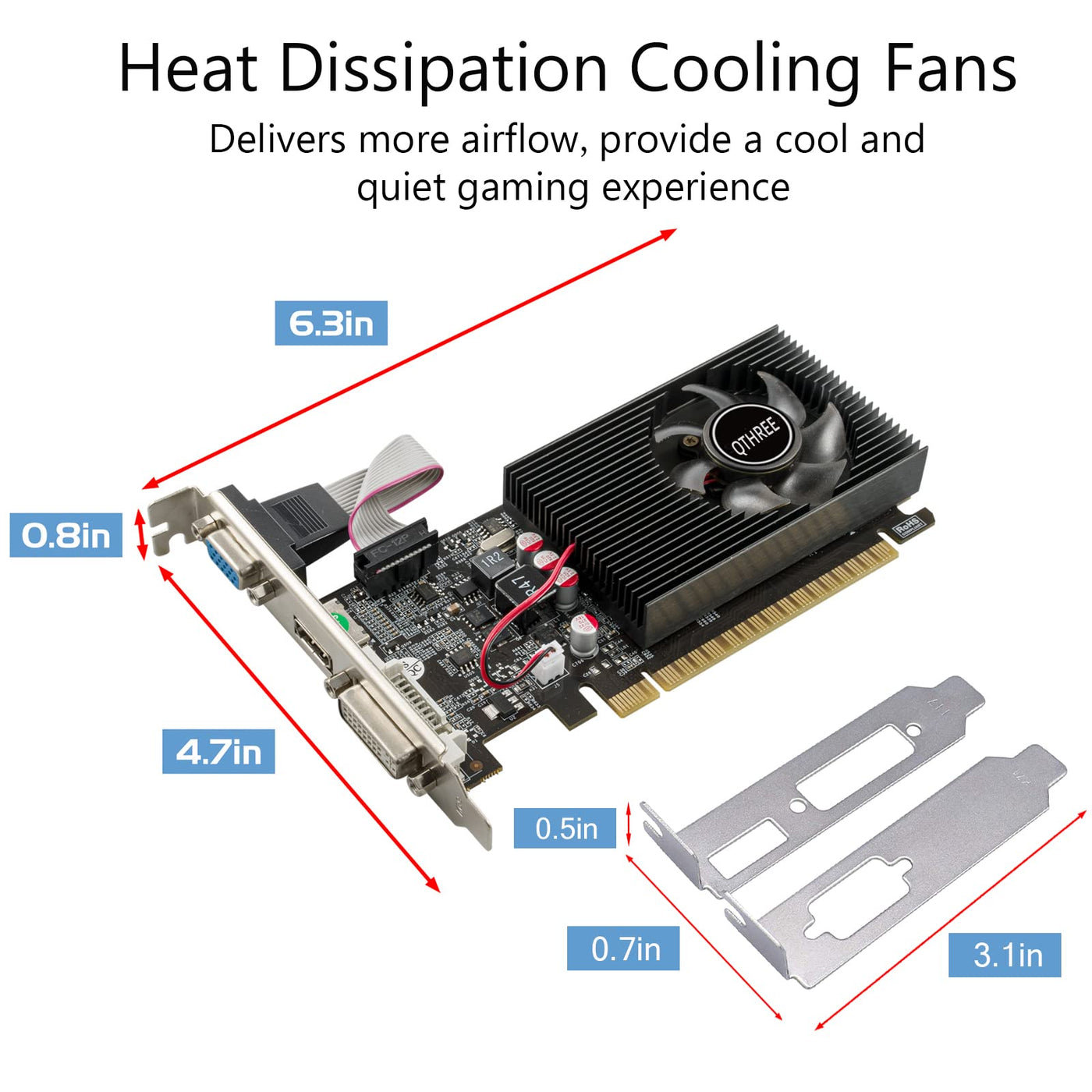 ? 4G Ddr3 Memory ?A Great Upgrade For Your Integrated Graphics, The Geforce Gt 730 Accelerates The Overall Performance Of Your Pc. Geforce Gt 730 Graphics Card Is With 4G Ddr3 High-Speed Video Memory Graphics Card Ensures Up To 1334 Mhz Speed,Which Can Speed Up Your Pc Multimedia Experience Very Well And Enjoy Ultra-Fast Web Browsing And Incredible Photo And Video Editing Experience. | ?Faster Heat Dissipation?The Nvidia Graphics Card Is Equipped With Independent Cooling Fan, Which Keep The Gpu Cooler And Running Stronger, Provides A Quiet Gaming Or Movie Experience.Enjoy All Your Videos And Pictures At Hd Resolutions, With Faster Video/Photo Editing, Faster Web Browsing, And Faster Gaming Performance Compared To Integrated Graphics. | ?Low Profile Design?This Low Profile Graphics Card With Single Cooling Fan Is Perfect For Small Form Factor Or Full Sized Systems,Small Size,Easy To Install,Plug And Play.Includes Two Low Profile Brackets For Easy Integration Into Htpcs And Other Small Form Factor Systems To Ensure Compatibility With Many Of Today