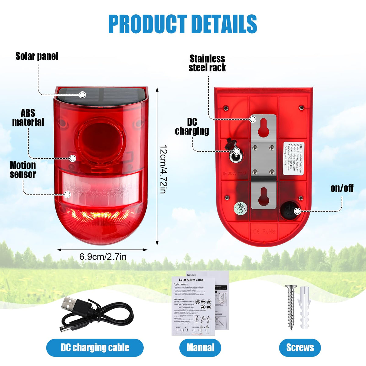Qualirey 16 Pack Solar Sound And Light Alarm Motion Sensor 129Db Outdoor Dog Baking Security Siren Waterproof Motion Activated D