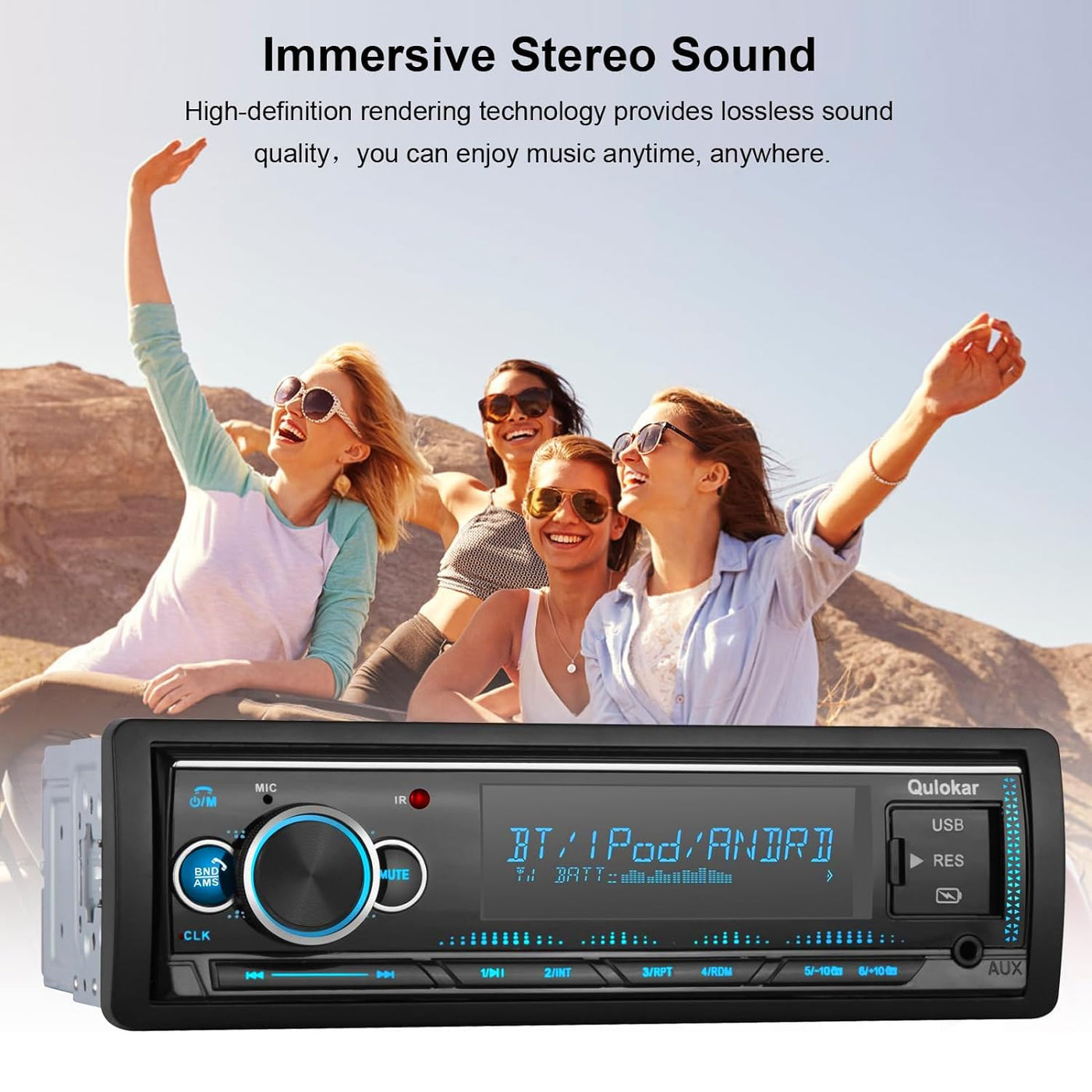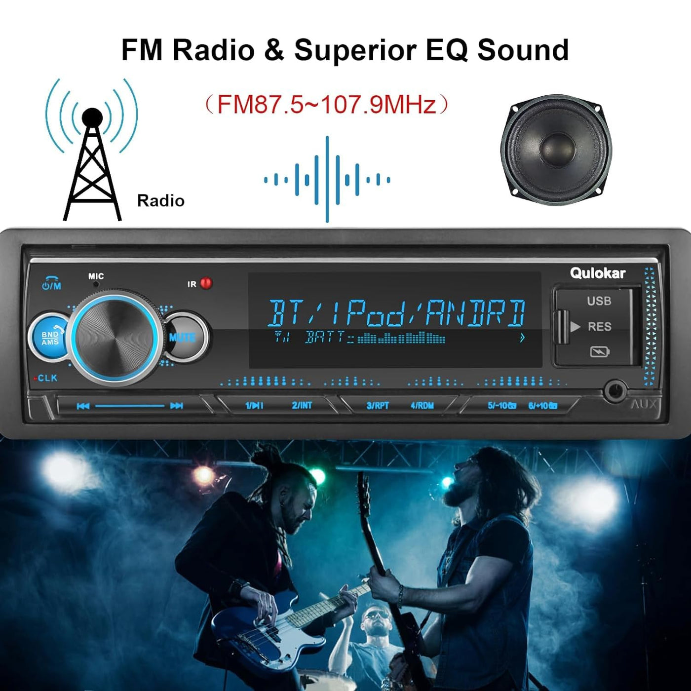 Qulokar Single Din Multimedia Car Stereo Radio,7 Character Lcd,Bluetooth With Hands Free Calling & Music Streaming,Usb Playback