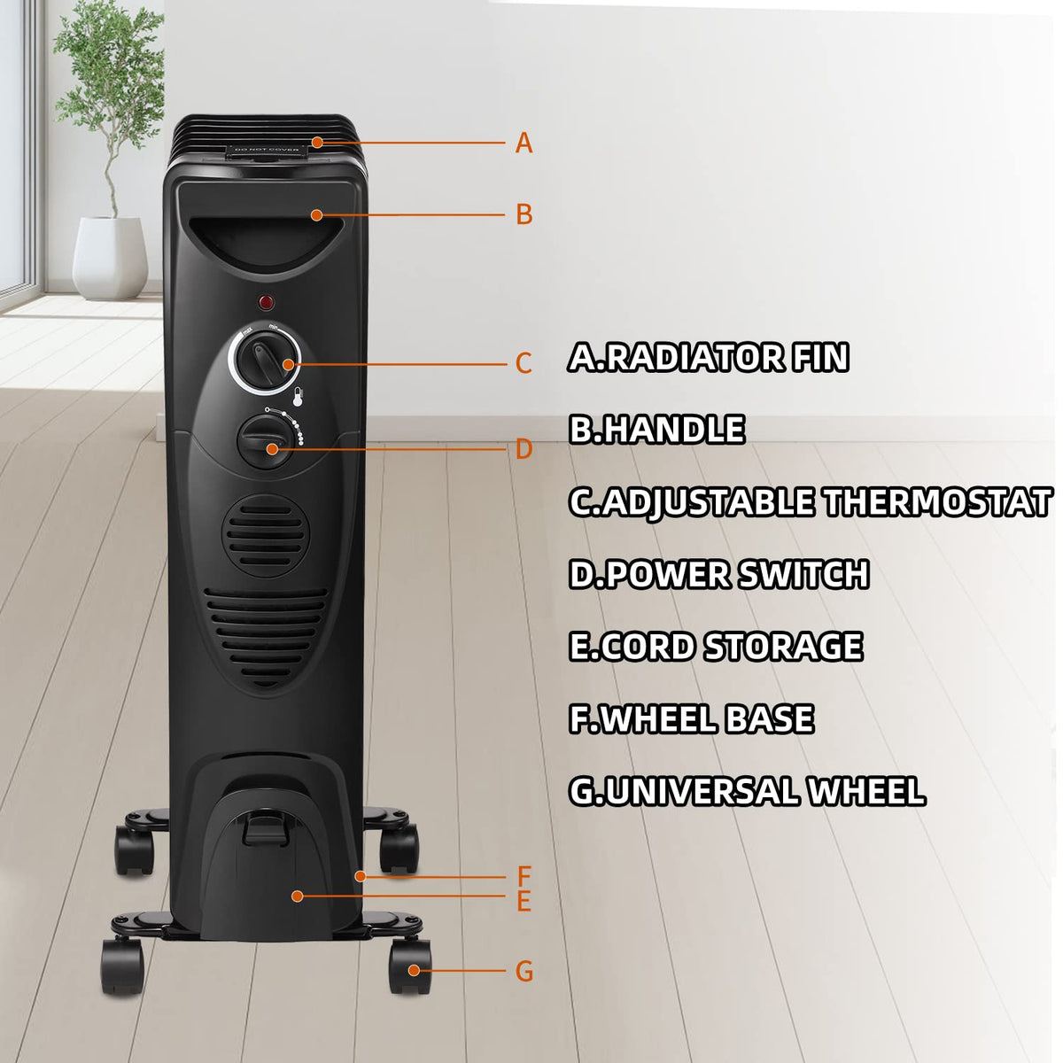 High Efficiency Heating: Our Radiator Heaters Use Strong Convection Heating Technology To Heat Cold Air To Form A Circulating Warm Air Stream.The Surface Temperature Of The Oil Radiator Is Low, So This Radiator Is Safe For Children And Pets. | Quiet And Comfortable Appliance: No Noise.This Water Heater Is Suitable For Office, Bedroom And Other Places. When You Are Sleeping, Resting Or Working It Can Be Used. | Easy To Operate And Maintain: Equipped With 600W/900W/1500W Three Power Supply Settings.The Oil Tank Has The Function Of Constant Temperature Regulation, Which Is Suitable For Different Occasions Such As Home, Office And Bedroom.Plus, The Heater Is Easy To Clean And You Don'T Need To Disassemble It. | Tip-Over Protection: You Don'T Need To Worry About Safety Issues When Using The Oil Tank At Home, As This Radiator Will Automatically Turn Off If You Trip Over Your Pet Or Children. | Easy To Move: The Oil Tank Heater Is Equipped With Four Casters For Easy Movement.You Can Put It In Every Corner Of Your House, Such As The Kitchen, Bedroom Or Living Room.