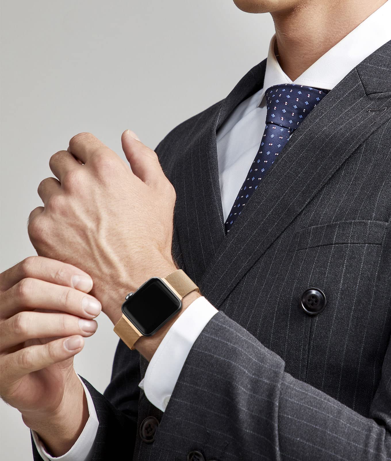 Rabini Stainless Steel Band Compatible With Apple Watch 38Mm 40Mm 41Mm 42Mm 44Mm 45Mm 46Mm 49Mm, Specially Designed For Women And Men.46Mm 42Mm(Series 10) Bands Compatible With Apple Watch Series 10 (2024);45Mm 41Mm Bands Compatible With Apple Watch Series 9 (2023), Series 8 (2022) And Series 7 (2021);49Mm Bands Fit For Apple Watch Ultra;44Mm 40Mm Bands Compatible With Iphone Watch Se 1St And 2Nd Generation, Series 6 (2020), Series 5 (2019) & Series 4 (2018);42Mm 38Mm Bands Compatible With Apple Watch Series 3 (2017) & Series 2 (2016) & Series 1 (2015).Please Choose The Correct Watch Model And Size For Yourself.Size Reference38Mm/40Mm/41Mm/42Mm(Series 10) Size Fits Wrist 5.5 -7.9 (140Mm-200Mm) In Circumference;49Mm/46Mm/45Mm/44Mm/42Mm(Series 3/2/1) Size Fits Wrist 5.9 -8.9 (150Mm-225Mm) In Circumference.Waterproof & Rustproofmade From Premium Stainless Steel Metal Material, The Sleek Iwatch Mesh Loop Band Is Sturdy,Rustproof, Fade-Proof And Easy To Maintain. It Is The Best Companion For Daily And Outdoor Sports Such As Running And Swimming,A Great Affordable Option For Your Apple Watch Accessories.About Stainless Steel Metal Iwatch Band Designthe Apple Watch Sport Loop Is Designed With Magnetic Adjustable Clasp That Makes The Smartwatch Band Easier To Put On And Take Off. And The Magnets Hold The Band Snugly On Your Wrist, Preventing Your Apple Watch From Falling Off, Safer & Stronger.Our Apple Watch Metal Band Feature An Advanced Mesh Weave Construction, So The Water In Your Wrist Dries Easily, Making You Feel More Comfortable.Wear It Your Waydecorate With Rabini Replacement Bands To Identify Your Apple Watch And Show Your Personality And Luxurious.A Ideal Gift For Your Love, Your Mate, Family, Friends During Thanksgiving, Christmas, Birthday, New Year.