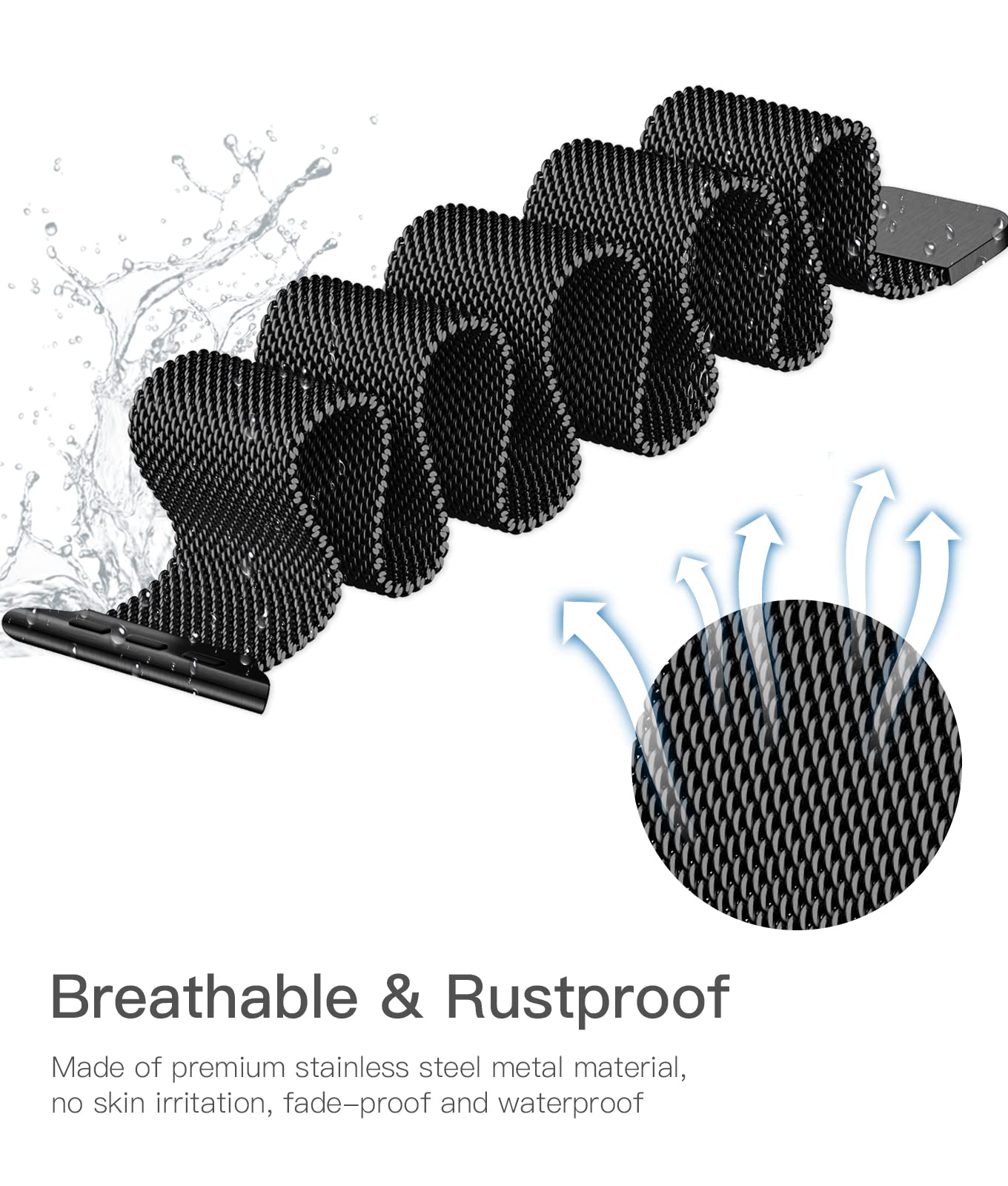 Rabini Stainless Steel Band Compatible With Apple Watch 38Mm 40Mm 41Mm 42Mm 44Mm 45Mm 46Mm 49Mm, Specially Designed For Women And Men.46Mm 42Mm(Series 10) Bands Compatible With Apple Watch Series 10 (2024);45Mm 41Mm Bands Compatible With Apple Watch Series 9 (2023), Series 8 (2022) And Series 7 (2021);49Mm Bands Fit For Apple Watch Ultra;44Mm 40Mm Bands Compatible With Iphone Watch Se 1St And 2Nd Generation, Series 6 (2020), Series 5 (2019) & Series 4 (2018);42Mm 38Mm Bands Compatible With Apple Watch Series 3 (2017) & Series 2 (2016) & Series 1 (2015).Please Choose The Correct Watch Model And Size For Yourself.Size Reference38Mm/40Mm/41Mm/42Mm(Series 10) Size Fits Wrist 5.5 -7.9 (140Mm-200Mm) In Circumference;49Mm/46Mm/45Mm/44Mm/42Mm(Series 3/2/1) Size Fits Wrist 5.9 -8.9 (150Mm-225Mm) In Circumference.Waterproof & Rustproofmade From Premium Stainless Steel Metal Material, The Sleek Iwatch Mesh Loop Band Is Sturdy,Rustproof, Fade-Proof And Easy To Maintain. It Is The Best Companion For Daily And Outdoor Sports Such As Running And Swimming,A Great Affordable Option For Your Apple Watch Accessories.About Stainless Steel Metal Iwatch Band Designthe Apple Watch Sport Loop Is Designed With Magnetic Adjustable Clasp That Makes The Smartwatch Band Easier To Put On And Take Off. And The Magnets Hold The Band Snugly On Your Wrist, Preventing Your Apple Watch From Falling Off, Safer & Stronger.Our Apple Watch Metal Band Feature An Advanced Mesh Weave Construction, So The Water In Your Wrist Dries Easily, Making You Feel More Comfortable.Wear It Your Waydecorate With Rabini Replacement Bands To Identify Your Apple Watch And Show Your Personality And Luxurious.A Ideal Gift For Your Love, Your Mate, Family, Friends During Thanksgiving, Christmas, Birthday, New Year.