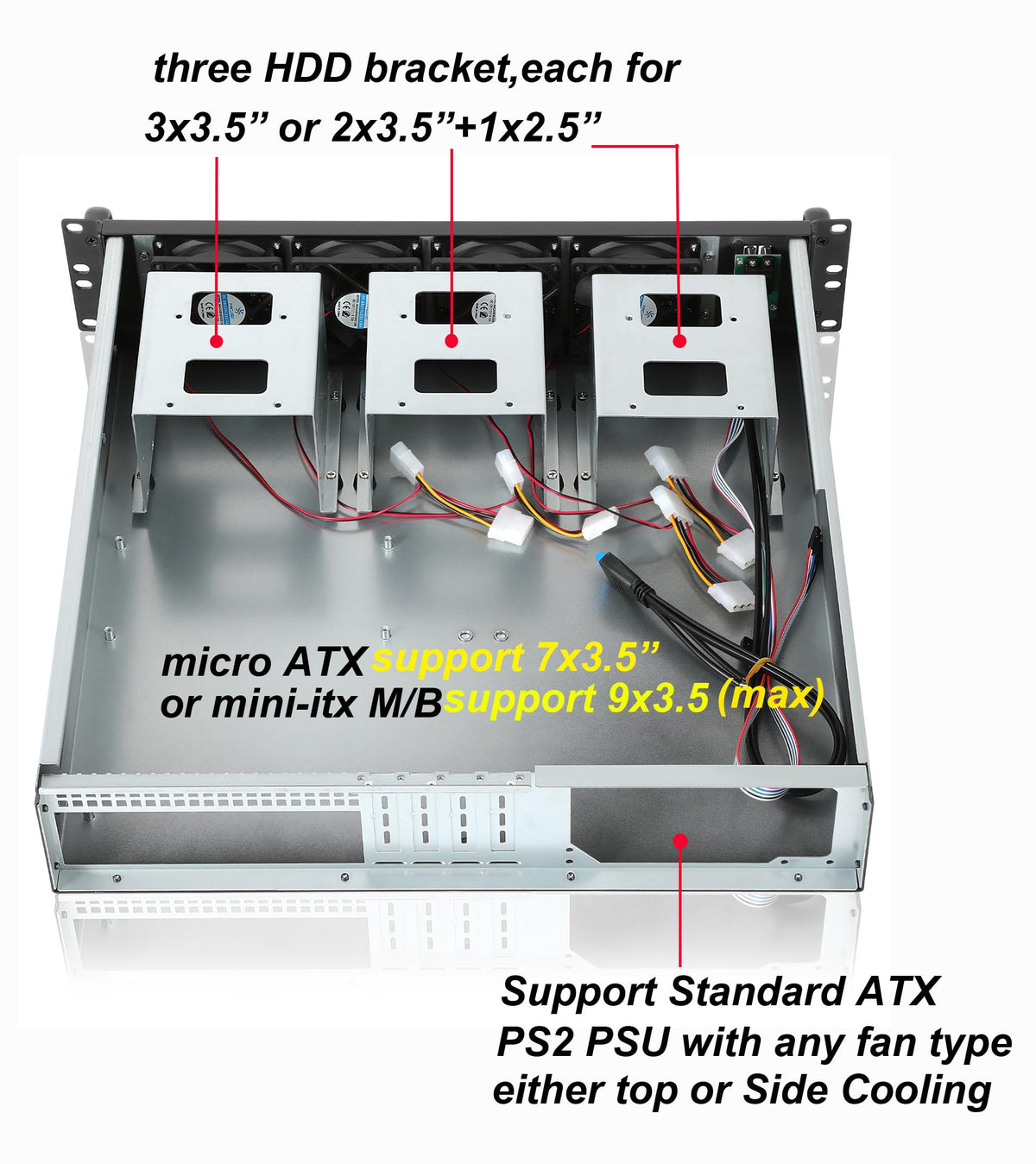 Rackchoice Microatx/Mini-Itx 2U Rackmount Server Chassis 9X3.5 Bay (Use Mini-Itx Mb) 7X 3.5 (Use Micro Atx Mb) / Usb3.0 With 2.0 Adapter Support Atx Psu Either Top Or Side Cooling Depth 17.7''
