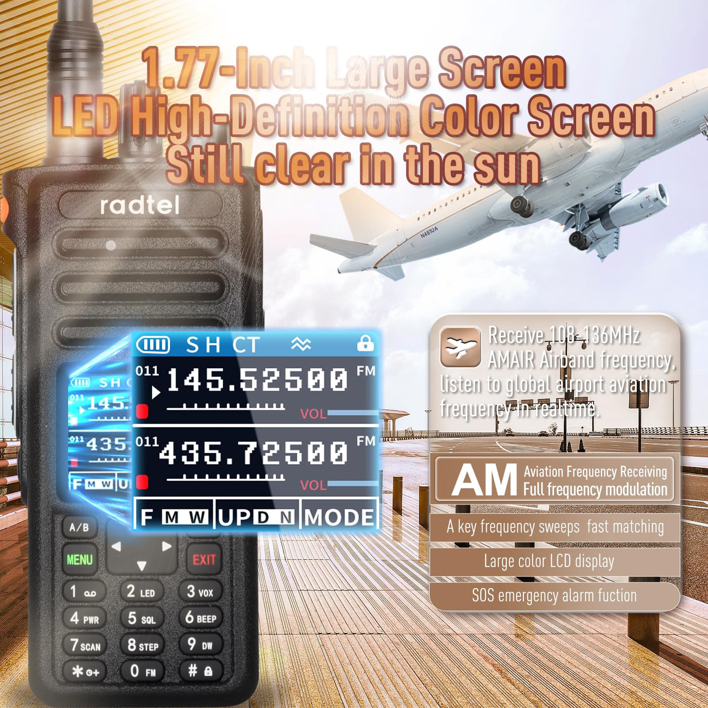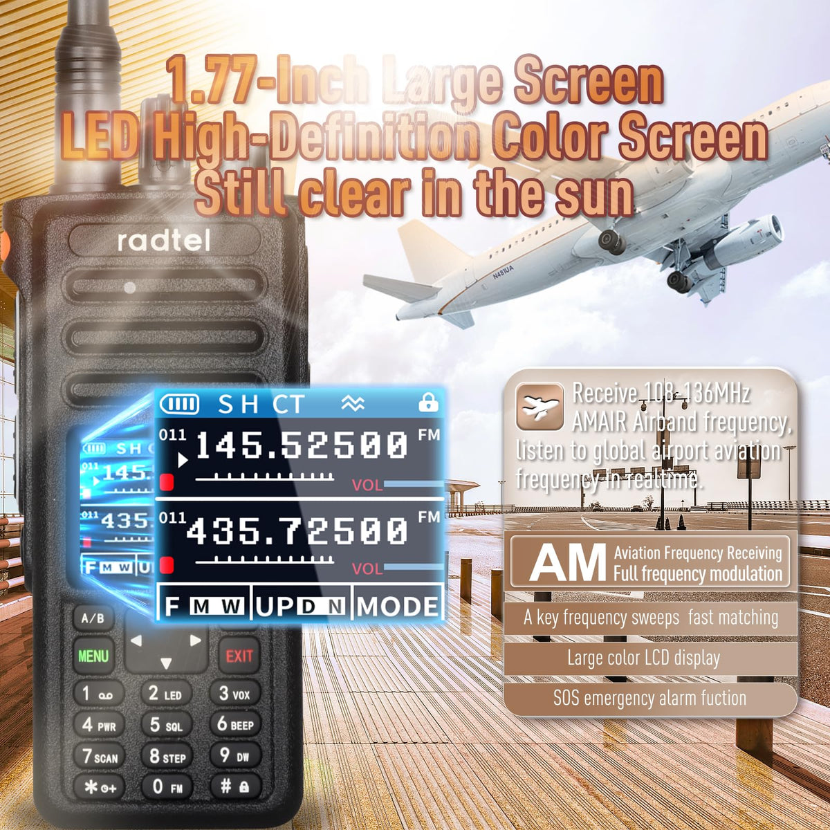 Radtel Rt 730 10W Air Band Walkie Talkie, Tri Band Ham Radios Long Range 199Ch Ht, Rechargeable Handheld Two Way Radio With Usb