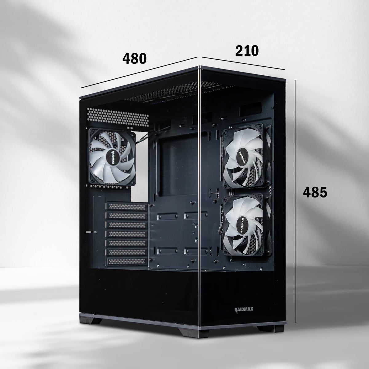Raidmax Infinita Series Tempered Glass Aqua View Case Corner Structure Free Panoramic Design, Argb Fans Included, And Support