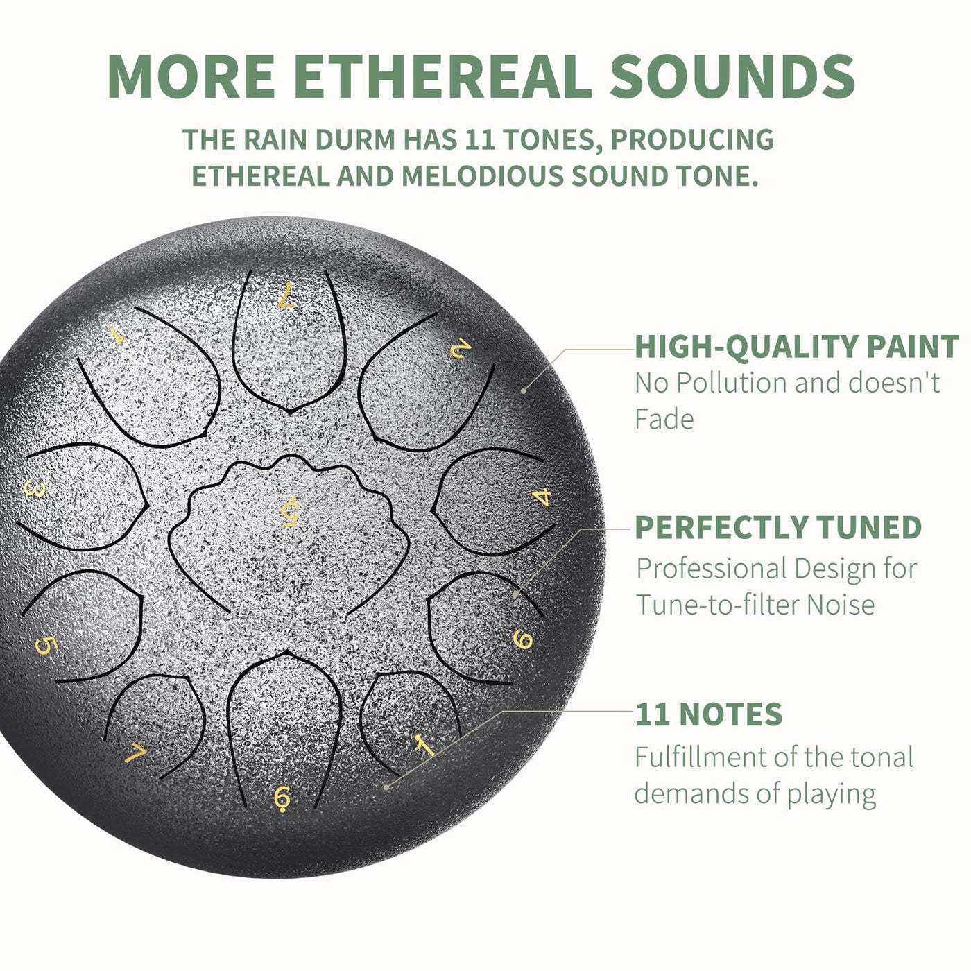 Rain Drum For Outside Garden, 8 Inches 11 Notes Steel Tongue Drum Rain Chime, Chakra Drum For Rain, Rain Drum For Outside Garden