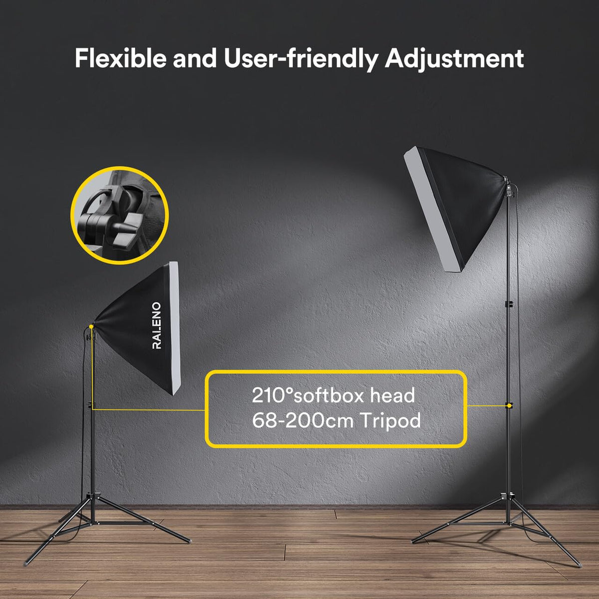 Raleno Softbox Photography Lighting Kit Professional Photo Studio Lighting With 2�20�28In Soft Box, 2� 50W Led Bulb Continuous Lighting System Photo Studio Equipment, Photo Model Portraits Shooting Box Lighting For Filming Model Portrait Product Fashion Photography Video Recording