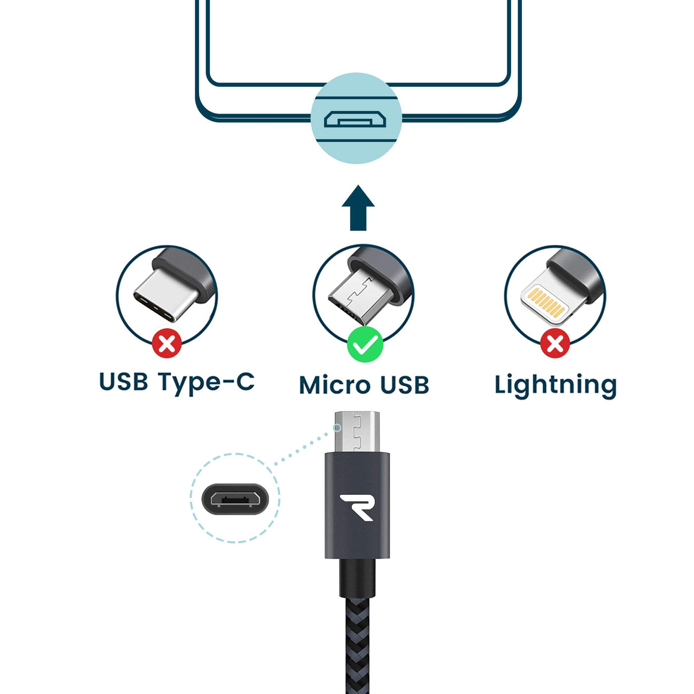 Micro Usb Cable-2 Pack-Rampow Braided Nylon Cell Phone Charger - Fast Charging & Sync - Micro Usb Charger 2.4A For Samsung Galaxy S5/S6/S7, Htc, Lg, Sony, Ps4, Mp3 And More