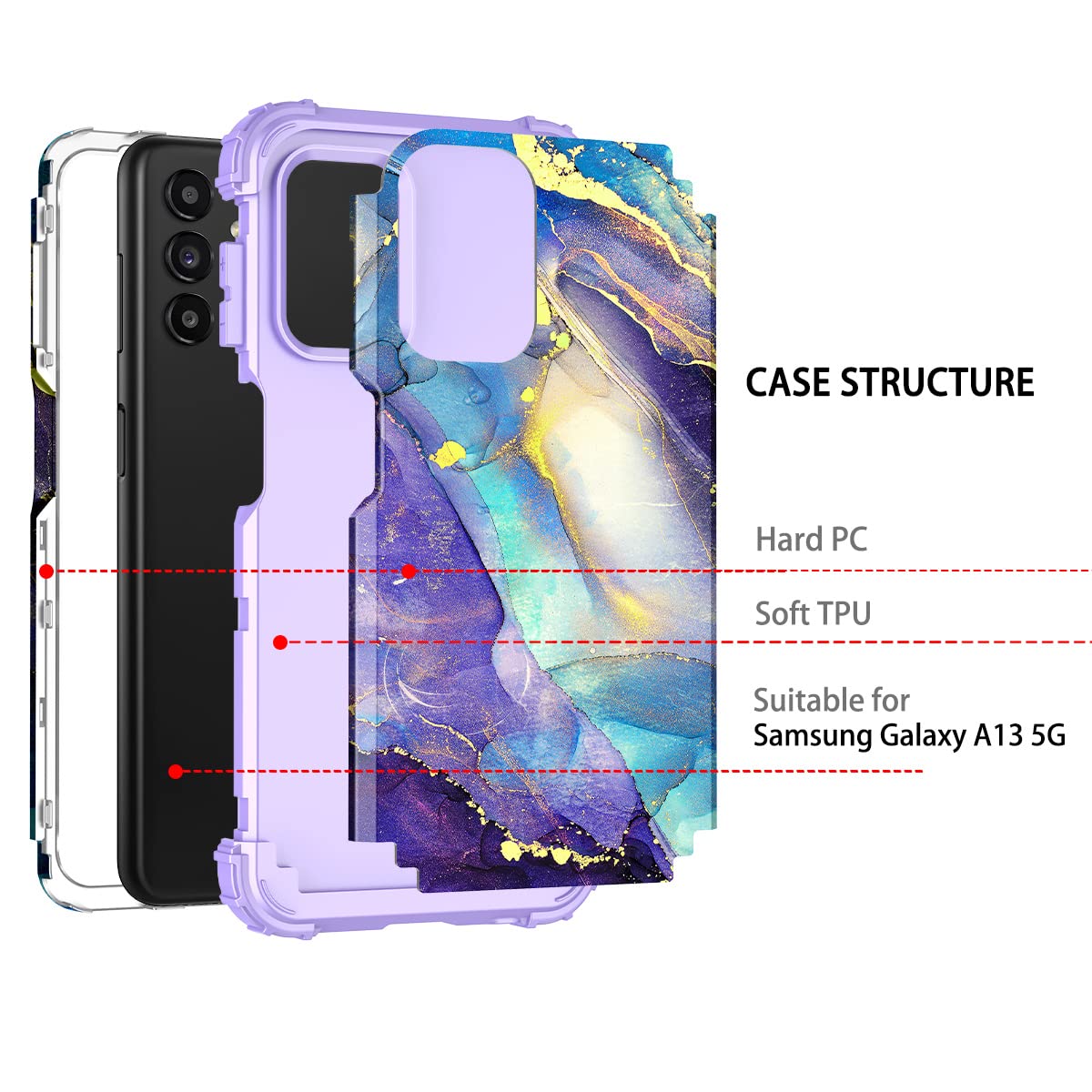 Rancase For Galaxy A13 5G Case,Three Layer Heavy Duty Shockproof Protection Hard Plastic Bumper +Soft Silicone Rubber Protective
