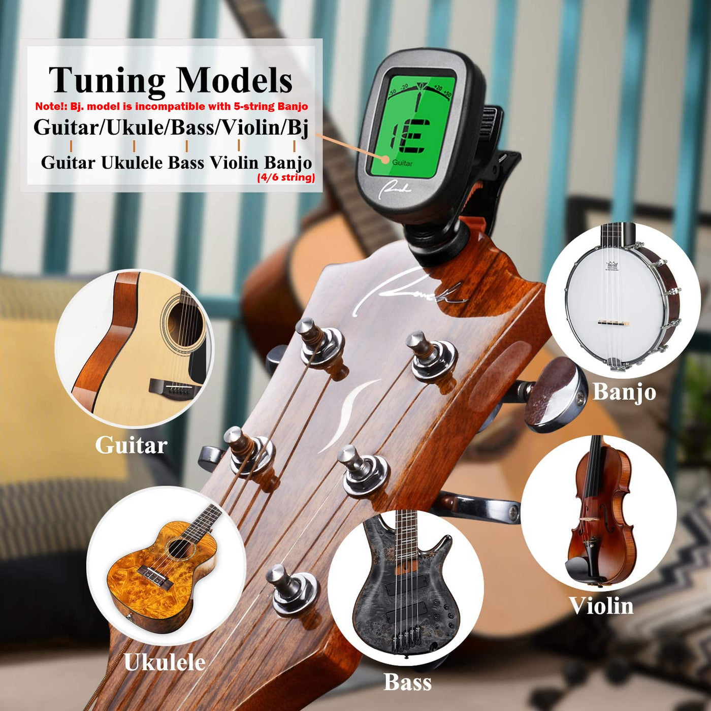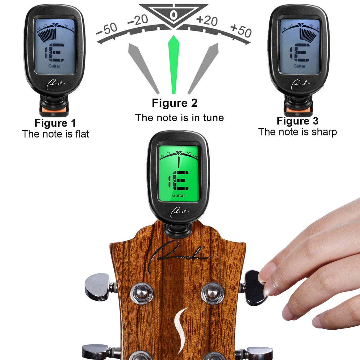 Ranch Guitar Tuner Clip On For Acoustic/Electric Guitar, Ukulele, Violin, Bass, Banjo & Chromatic Tuning Modes Classical Black