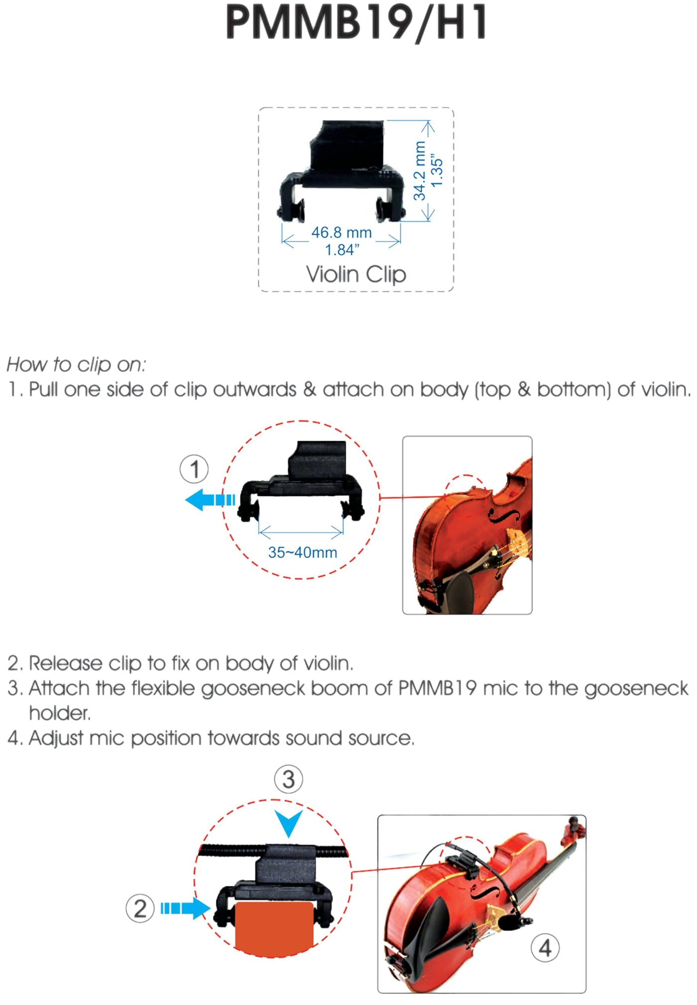 Rannsgeer Pmmb19 Ls Vl Musical Instrument Microphone With Violin Clip On & 5 Connectors