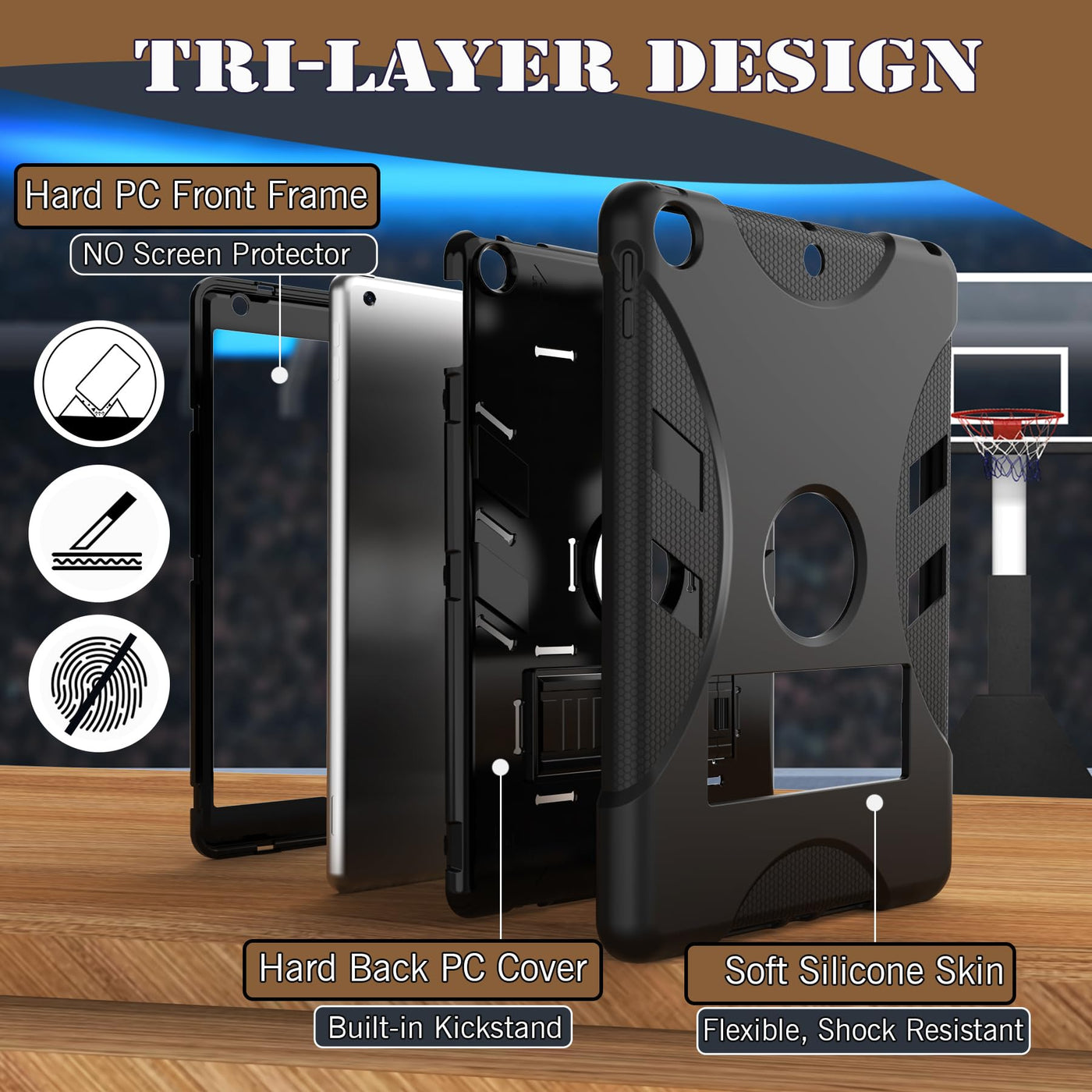 Q: What kind of protection does this case provide?A: This case features a dual-layer design with soft silicone that absorbs 80% of impacts and a reinforced polycarbonate shell that resists 360° drops, offering military-grade protection for your iPad.