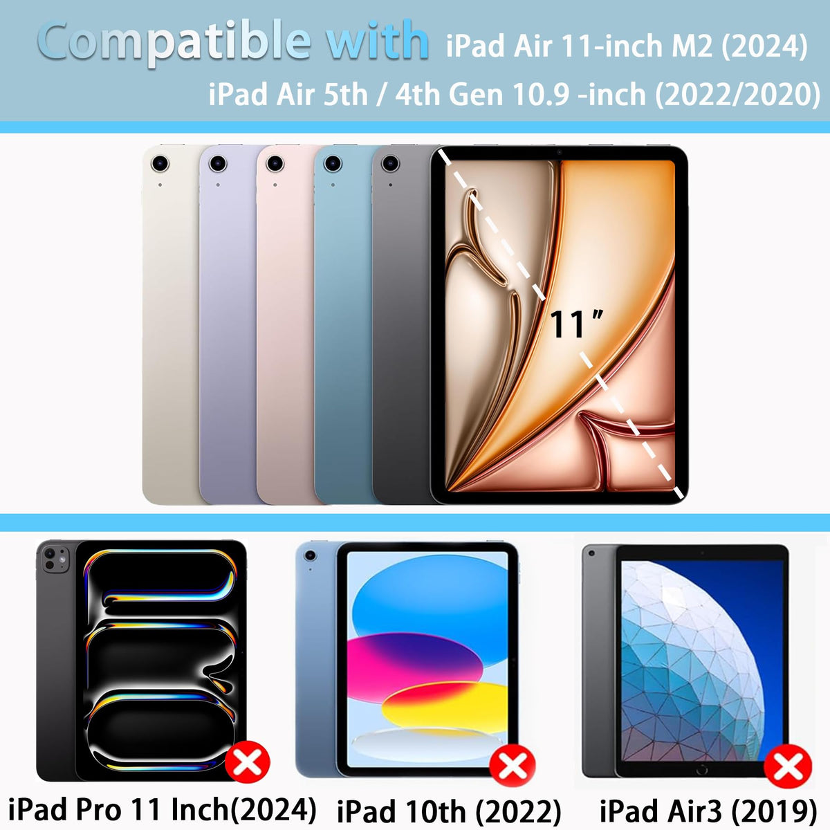 Q: Is the Rantice Case compatible with all iPad Air models?A: The Rantice Case is specifically designed for the iPad Air 6th Generation (2024), iPad Air 5th Generation (2022), and iPad Air 4th Generation (2020). Please ensure to check your iPad model number to confirm compatibility before purchase.