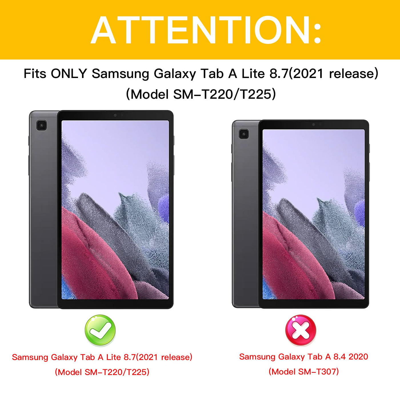 Q: Is the Rantice Samsung Galaxy Tab A7 Lite Case compatible with other Samsung tablet models?A: No, the Rantice Samsung Galaxy Tab A7 Lite Case is specifically designed for the Samsung Galaxy Tab A7 Lite 8.7 Inch (2021 Release), Model Number: SM-T220/T225. It is essential to check your tablet's model number in the settings to ensure compatibility.