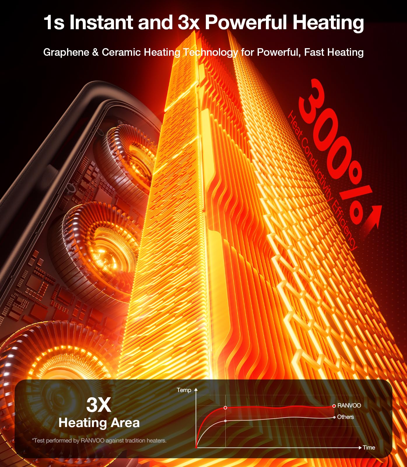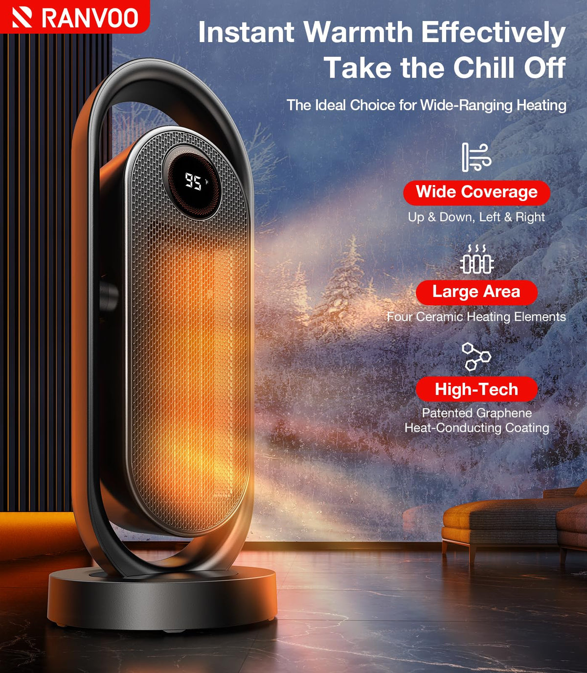 Stay Cozy This Winter With The Ranvoo Space Heater. This 1500W Heater Uses Airpivot Technology To Efficiently Warm Rooms Up To 300 Square Feet, With A Wide Range And Precise Temperature Control. Made From Safe Materials, It Features Overheat Protection And An Energy-Saving Eco Mode. With A Stylish Design And Remote Control, Plus A 180-Day Warranty And 24/7 Support, Your Comfort Is Guaranteed.
