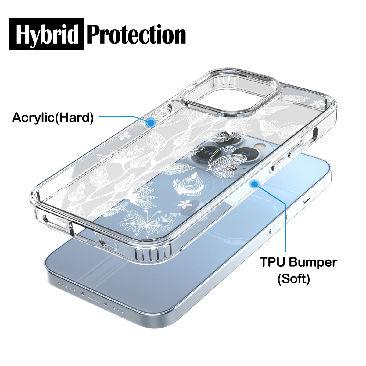 Compatible With Iphone 13 Pro (61) Only Lightweight Slim Case With Soft Tpu Side And Crystal Clear Acrylic Hard Back Panel Raised Lip Edges For Protecting Screen During Dropping, Phone Can Be Placed Face Down Without Scratching The Screen Compared To Silicone Skins, This Tpu Skin Is Stiffer To The Touch, But Remains Flexible Shock Absorbent, Shatterproof, And Anti-Scratch Material Specifically Designed For Your Phone Sleek, Fits Like A Glove Precise Cutouts For Camera Lens, Speaker, Charging Port And Audio Port Full Button Protection And Easily Accessible One Piece Design Make It Hybrid Design, Offers Superior Protection For Your Device From Everyday Shock, Impact, And Scratches