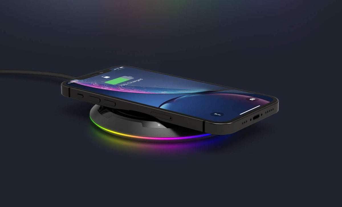 Rapidx Prismo Rgb Wireless Charger,10W Max Fast Wireless Charging Pad Compatible With Iphone 14/14 Plus/14 Pro/14 Pro Max/13/13 Mini/Se 2022/12/11/X/8,Samsung Galaxy S22/S21/S20,Airpods Pro 2(Black)