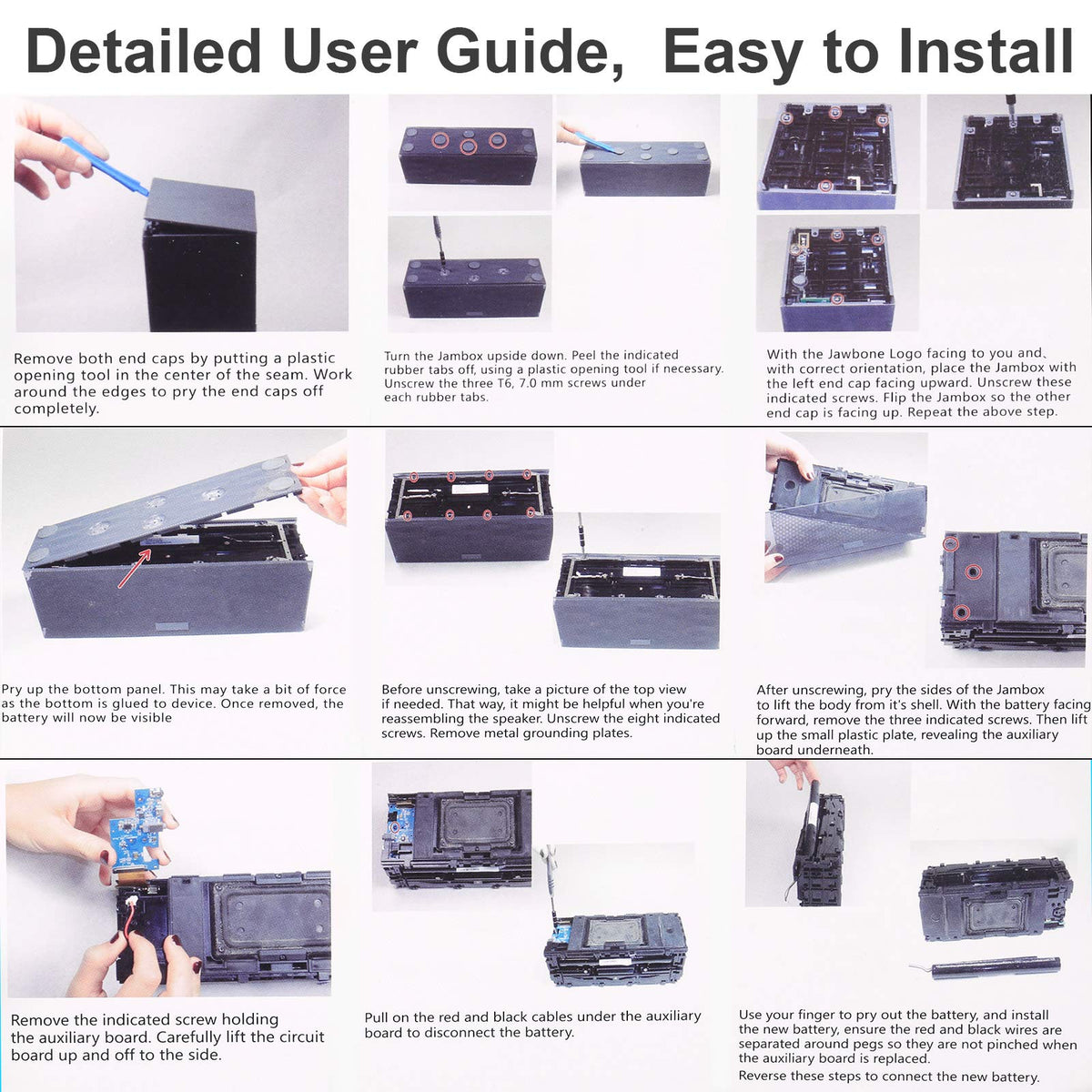 Rapthor Brand New And High Quality Replacement Battery For Jawbone Big Jambox Wireless Bluetooth Speaker J2011-03-Us Specifications: Battery Type: Li-Ion Condition: Brand New Product Type: Replacement Battery Voltage: 11.1V Capacity: 3500Mah Dimension: Diameter 22.3Mm, Length 200Mm( Not Include The Connection Cable) Warranty: 12 Months Compatible With: Big Jambox Speaker J2011-03-Us Package Included: 1 Pc Rapthor Replacement Battery( Speaker Not Included) 1 Free Screwdriver Tool Customer Service: We Provide 30-Day Money Back And 12-Month Warranty If You Are Not 100% Satisfied With Our Product ,Please Feel Free To Contact Us. Note: Please Check Your Battery Part Number Or Item Model To Ensure You Are Getting The Correct Battery.