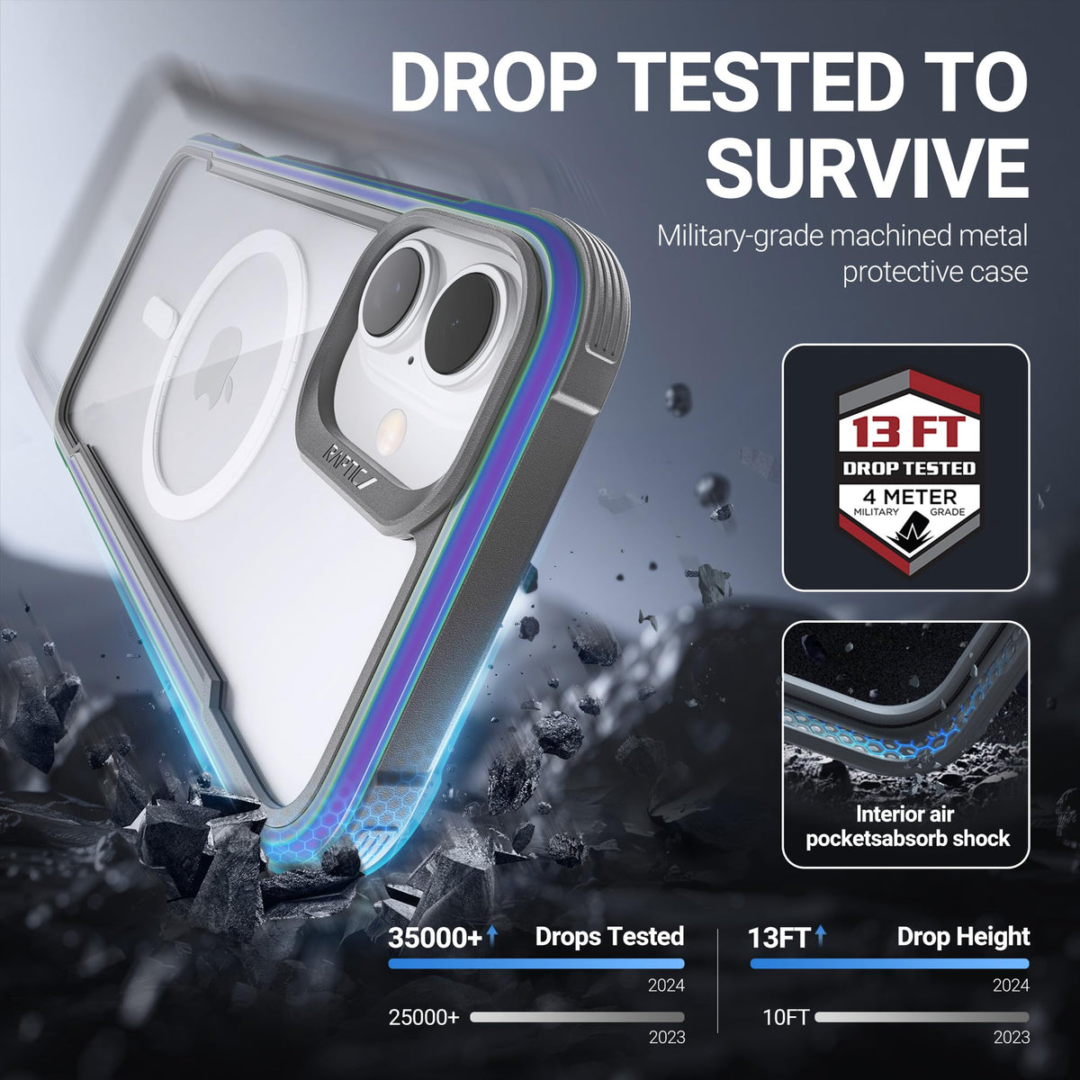 Q: How durable is the RAPTIC Shield Magnetic case?A: The case is military-grade and has passed drop tests from heights up to 13 feet (4 meters), ensuring your iPhone 16 Plus is protected from falls and impacts.