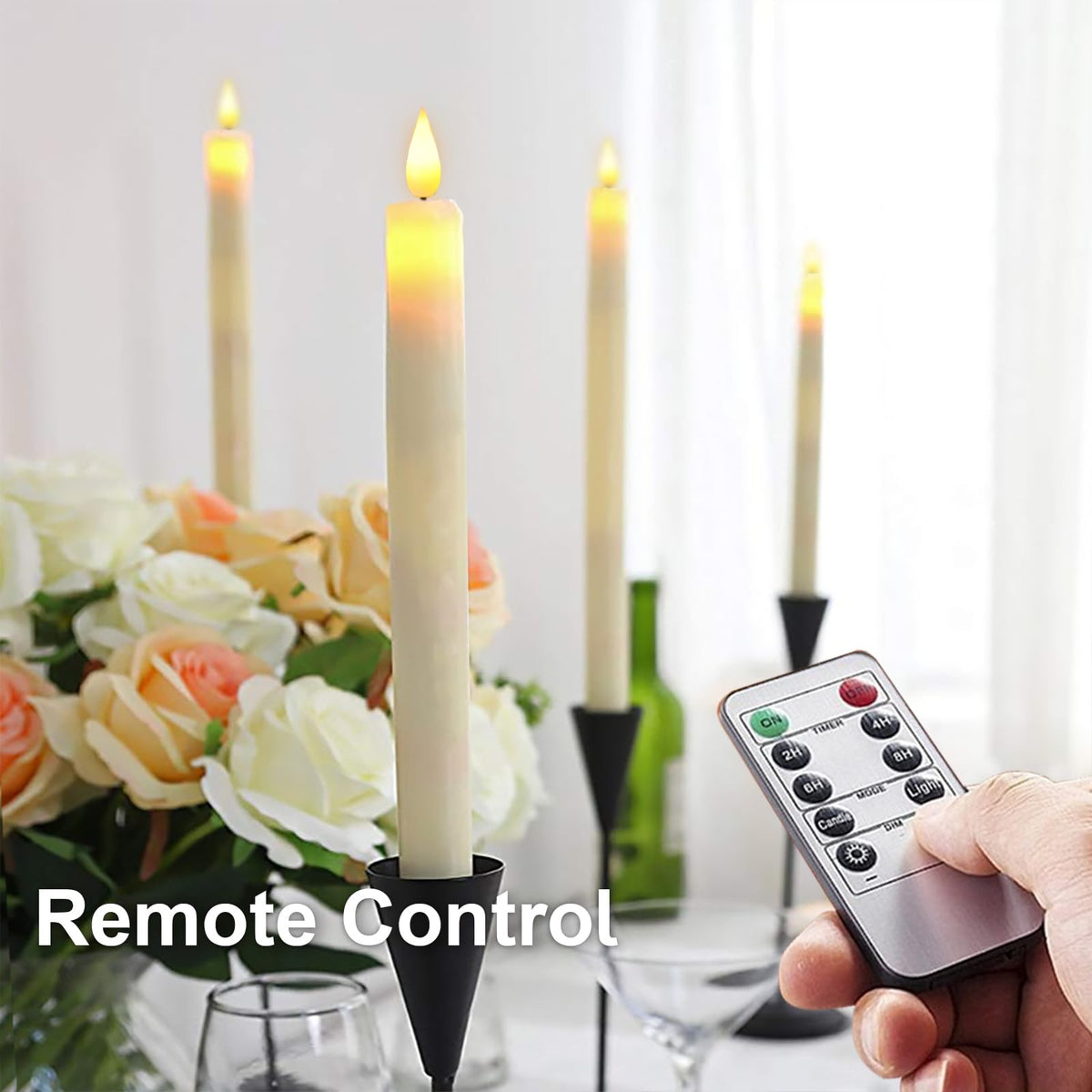 The Flameless Taper Candles Have A Built-In Dimmer, Adjust The Brightness At Will, Meet Various Decorative Needs; 2/4/6/8 Hours Cycle Timer Set The Time Period For The Candle To Light Every Day. All These Functions Can Be Deployed Through A Small Remote Control, Convenient And Facilitative.
